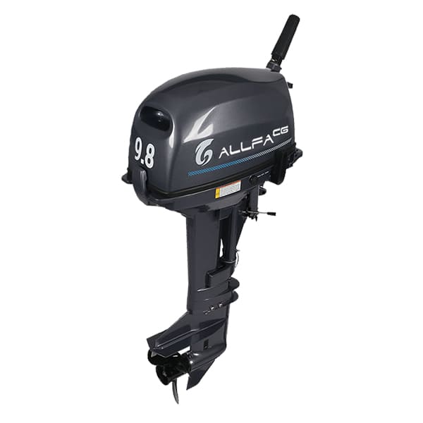 Лодочный мотор ALLFA CG T9,8 – двухтактный, двухцилиндровый мотор. Работает на топливной смеси бензина и масла (50:1). Аналог модели: Тohatsu. Мотор оснащен внешним топливным баком (12л.) и топливным шлангом, чекой безопасности, обязательно ремкомплектом. Мотор предназначен в основном, для транцевых лодок среднего размера. Мотор позволяет идти на транцевых надувных лодках средних размеров в глиссирующем режиме.