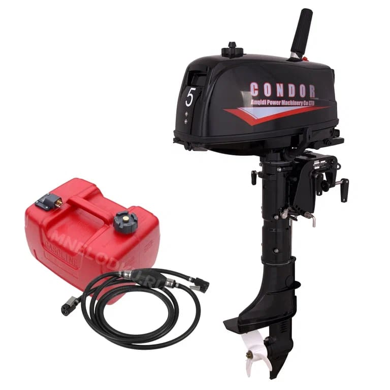 Лодочный мотор Condor T5HS – это двухтактный, одноцилиндровый двигатель с ручным запуском и румпельным управлением, оснащенный рабочим объемом 102 см3 и мощностью 5 л. с. С таким двигателем легко отправиться на прогулку по спокойному водоему или добраться до любимых мест для рыбалки.