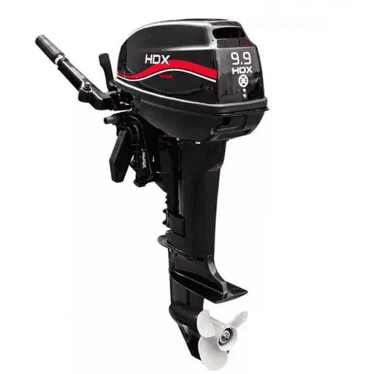 Двухцилиндровый лодочный мотор HDX T 9,9 BMS среднего класса. Обладая мощностью 9,9л.с., агрегат весит всего 36 кг. Выносной бак рассчитан на 12 литров топлива. Подвесные моторы HDX T 9,9 BMS запускаются вручную, управляются румпелем. Подвесной мотор HDX T 9.9 прост по конструкции, поэтому нетребователен в обслуживании и комфортен в эксплуатации.