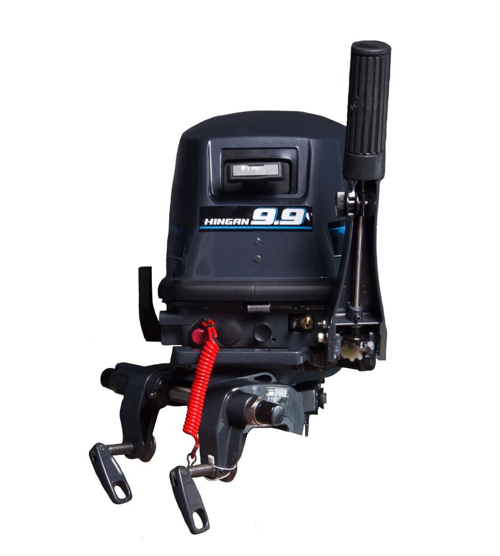 Двухтактный мотор HINGAN 9.9 ENDURO – бензиновый двигатель для лодок и катеров, который весит 41 килограмм. Он мощный, но малогабаритный, поэтому устройство можно перевезти в багажнике автомобиля. Запускается мотор вручную, с помощью троса CDI, а управление у данной модели — румпельное.