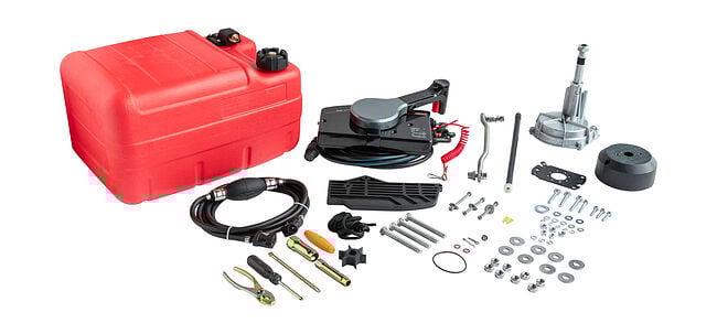 В комплект управления не входят: руль, рулевой трос, троса газа реверса.
