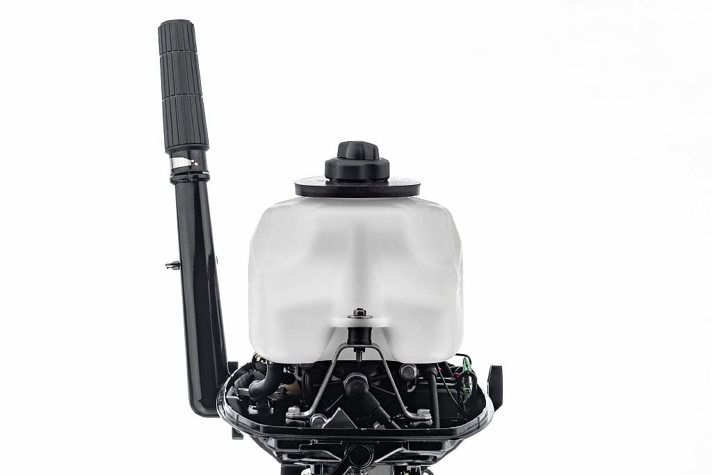 Для облегчения запуска холодного двигателя в конструкции карбюратора предусмотрена воздушная заслонка, с регулировкой на корпусе. А для контроля работы системы охлаждения на моторе установлена специальная форсунка. Мотор Marine Rocket MR5FHS запускается ручным стартером, а управляется стандартным румпелем с поворотной ручкой газа (гашеткой мотоциклетного типа) с анти-проскальзывающими насечками.