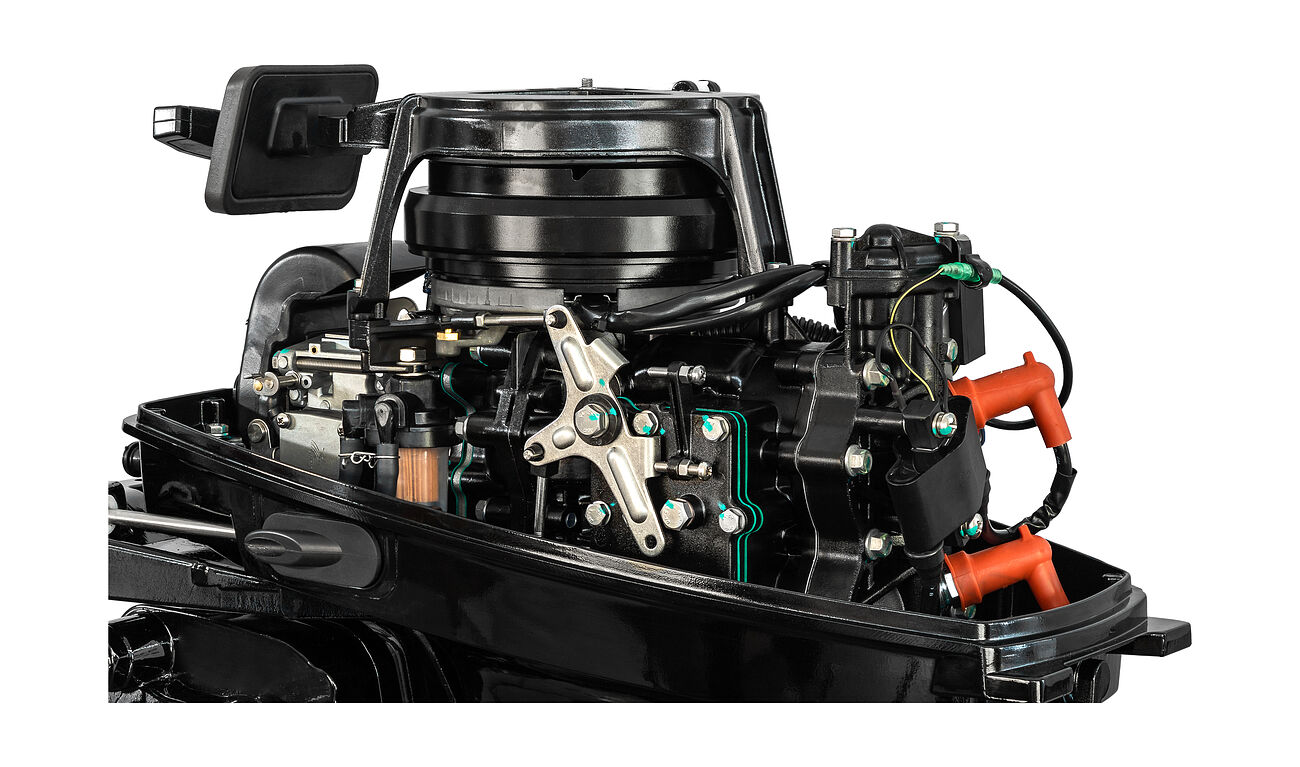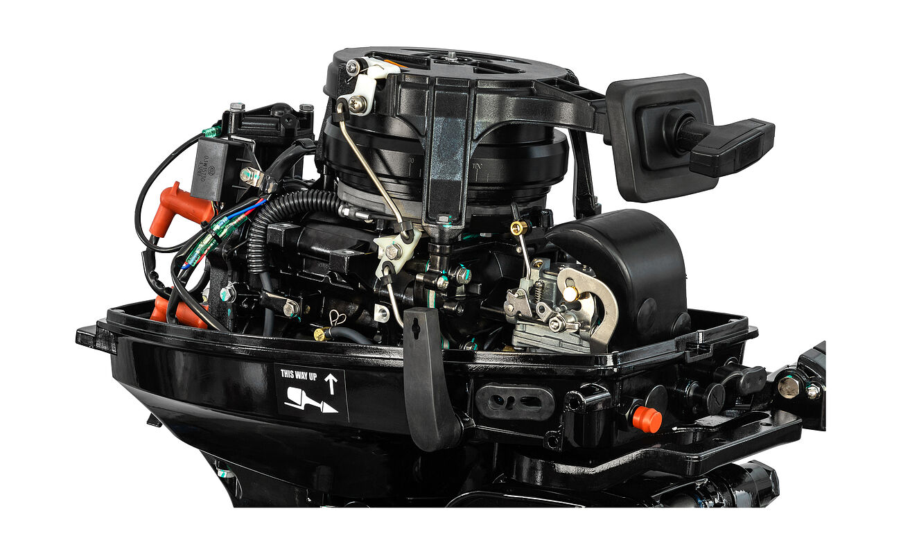 Двухтактный лодочный мотор Marine Rocket MR9.9PRO мощностью 20 л.с. с ручным, румпельным управлением.