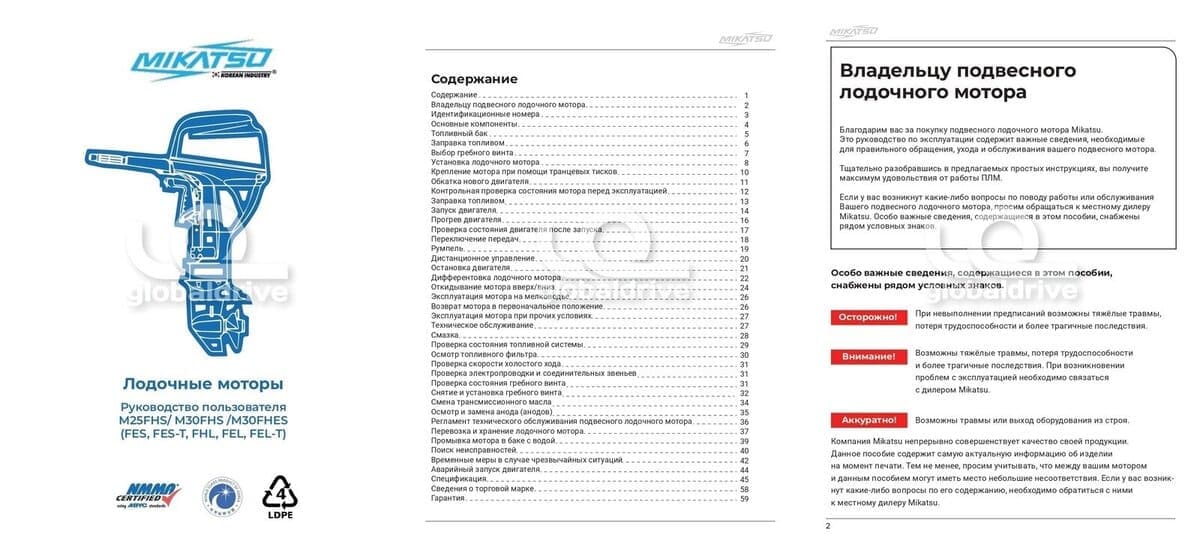 В комплектацию мотора Микатсу входит генератор переменного тока, способный питать стояночные огни и походные электроприборы. Все детали защищены антикоррозийным сплавом. Каждая модель легко запускается, проста в управлении и обслуживании. Двухтактные моторы Mikatsu M30FES выбирают профессионалы и любители для простого отдыха на воде и для использования в коммерческих целях. Вы найдёте в двухтактном семействе Mikatsu подходящего для себя надёжного спутника