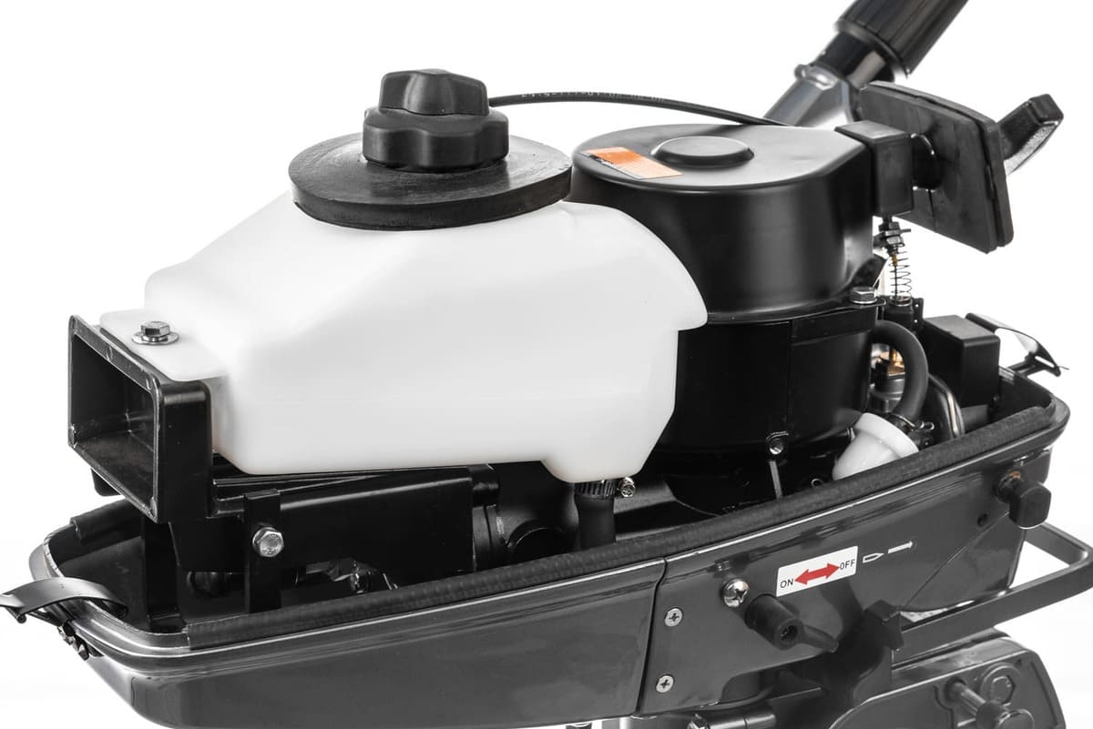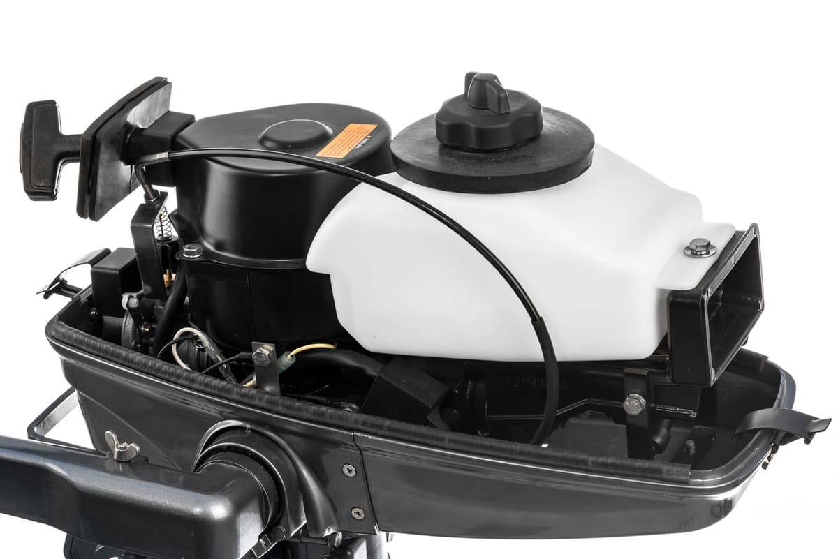Подвесной лодочный мотор Mikatsu (Микатсу) M4FHCS является примером оптимального соотношения высокой удельной мощности, малого веса и невысокой цены. Он является аналогом хорошо себя зарекомендовавшего за многие годы работы японского двигателя Tohatsu (Тохатсу). Его 2-х тактный одноцилиндровый двигатель объемом 79,6 см3 мощностью 4 л. с. прекрасно подойдет для рыбалки, охоты или отдыха на воде в лодке от 2 до 3 м. Встроенного бака объемом 1,4 л хватит на час работы на полном ходу. У данного ПЛМ есть передняя и нейтральная скорости. Реверс осуществляется за счет разворота мотора на 180º.От своих 4-х тактных собратьев его отличает меньший вес (13 кг), большая удельная мощность и простота конструкции, а значит повышенная надежность. Усовершенствованная цифровая система зажигания CDI обеспечит легкий запуск двигателя в любых погодных условиях.