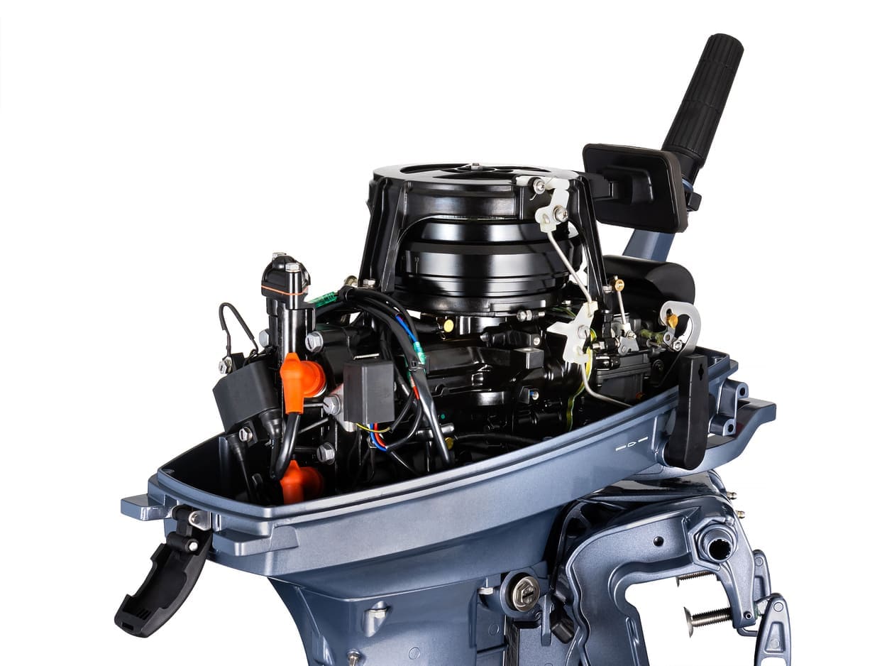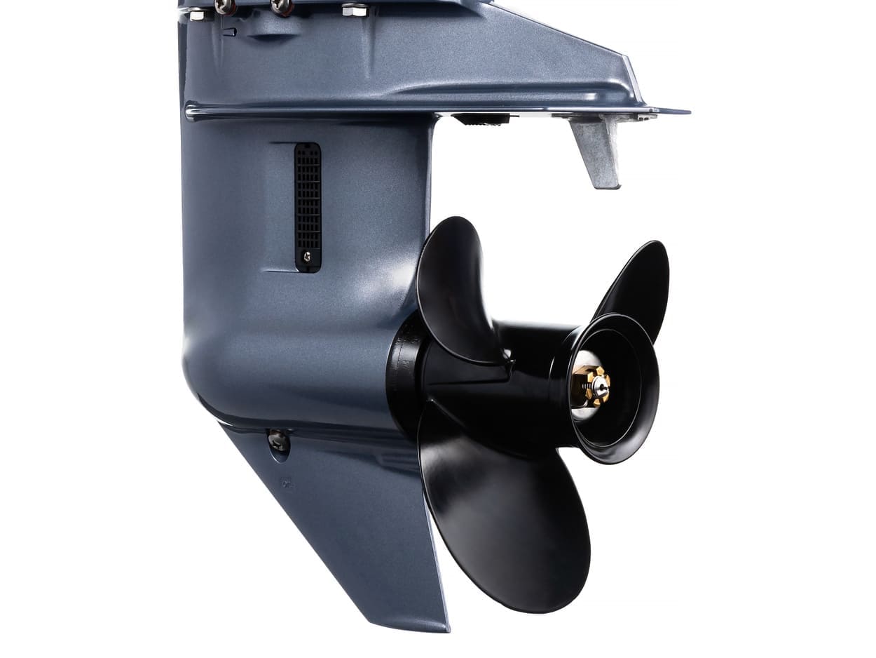 - Выпуск отработанных газов через ступицу винта обеспечивает тихую работу подвесного мотора.