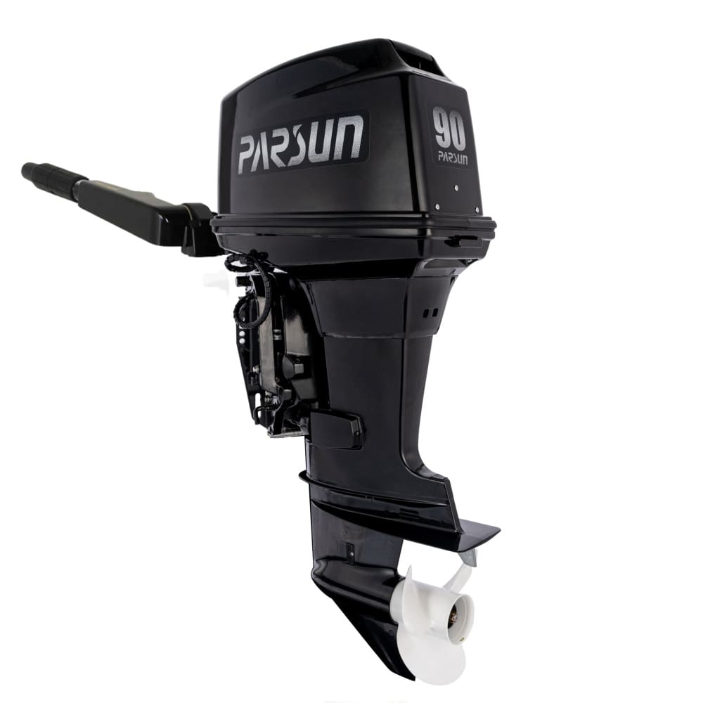 Трехцилиндровый лодочный мотор Parsun T 90 BML-D рекомендован тем, кто ищет мощный и легкий в управлении двигатель для активных действий на воде. Лодочный мотор оснащен прочным корпусом, покрытым высококачественной стойкой краской. Все лодочные моторы Parsun имеют высокопрочную алюминиевую конструкцию. Покрытие корпуса мотора многослойное и выполнено самыми современными лакокрасочными материалами PPG (США), которые обеспечивают высокие антикоррозийные свойства и надолго сохраняют внешний вид продукции. Стильный дизайн оптимально сочетается с надежностью деталей и механизмов. Двигатель комфортен и удобен в эксплуатации. Запуск двигателя происходит от ручной тяги шнура стартера. Безаварийный запуск мотора обеспечивает электронная система CDI. В двигателе имеется защита от запуска двигателя при включенной передаче. Мотор управляется румпелем, регулировка газа находится на поворотной ручке. Смазка движущихся частей осуществляется предварительно смешанным бензином и маслом. Благодаря автоматическому подъему и регулировке мотора на поворотно-откидном креплении можно c консоли поворачивать и откидывать мотор относительно транца, менять угол дифферента и положение мотора (мелководный режим).