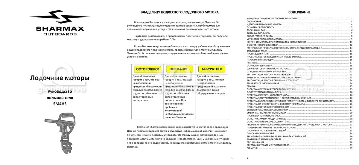 Компания Sharmax непрерывно совершенствует качество своей продукции, выпускаемой для требовательных водномоторников. Именно поэтому на моторы Sharmax компания Globaldrive предоставляет расширенную гарантию - 3 года (гарантия завода-производителя на лодочный мотор Sharmax – 1 год, а также продленная гарантия от Globaldrive - 2 года). Исключение составляет мотор Sharmax 3.5 Light, гарантия на который составляет 1 год. Производитель: Jiangsu Sharmax Outboards Co LTD (является дочерней компанией завода Jiangsu) Страна производства: Китай