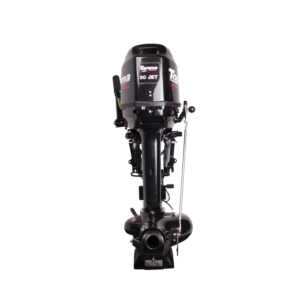 Toyama T30ABM JET – лодочный мотор известного завода Парсун - имеет ручной запуск и румпельное управление. Данная модель весит 63 кг. При этом, рабочий объем двухтактного силового агрегата составляет 496 куб. см. Электронная система зажигания обеспечивает минимальный уровень потребления топлива.