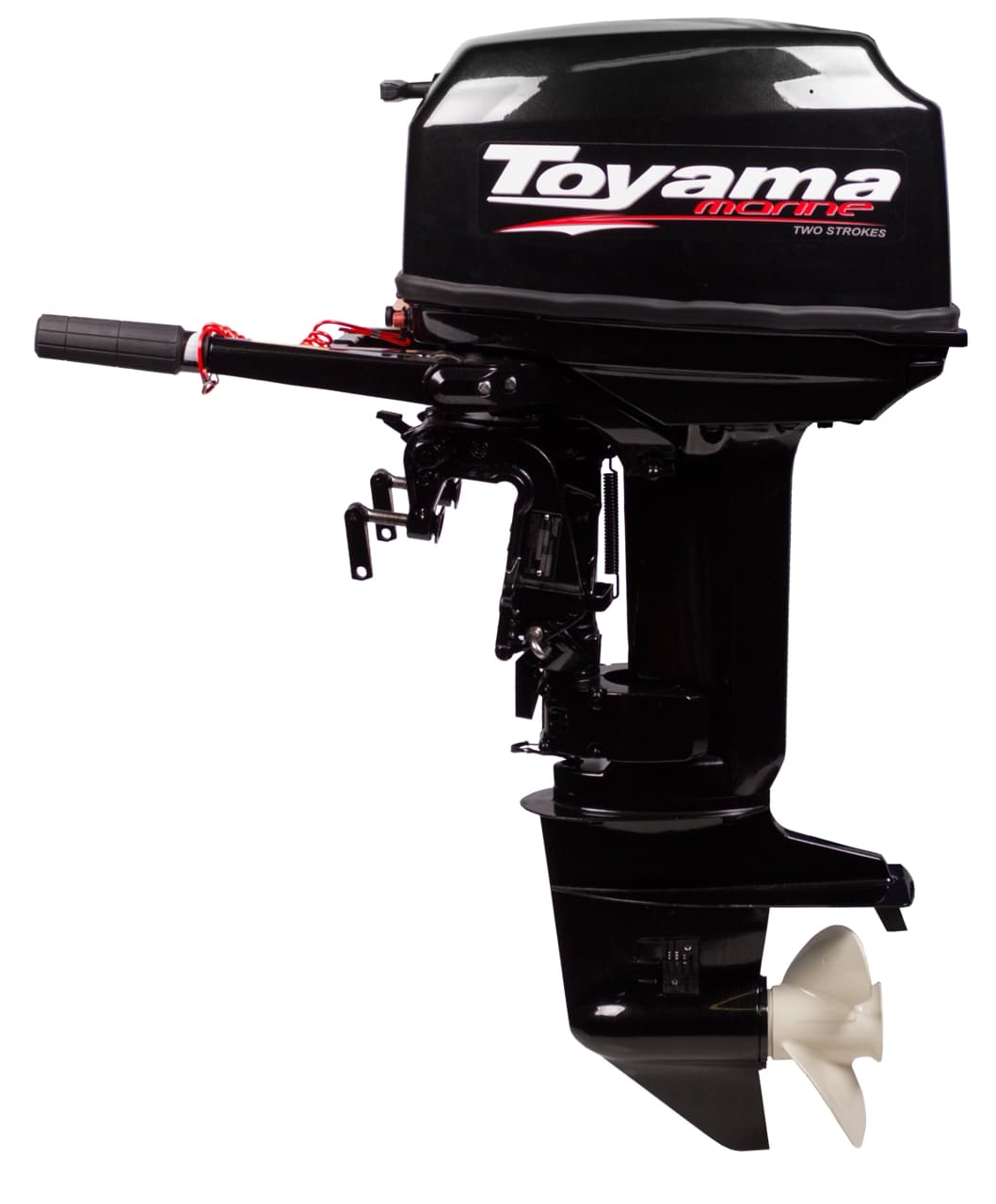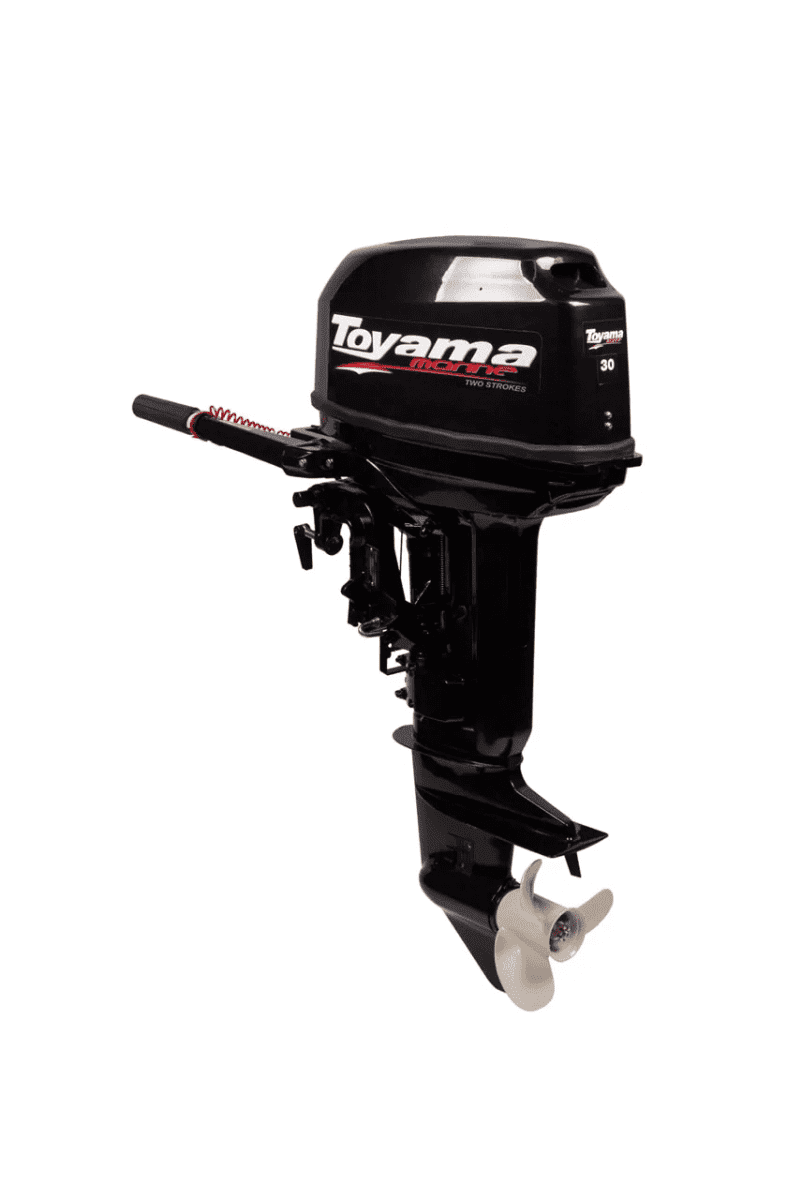Toyama T30ABMS – лодочный мотор известного завода Парсун - имеет ручной запуск и румпельное управление. Данная модель весит 52 кг. При этом, рабочий объем двухтактного силового агрегата составляет 496 куб. см. Электронная система зажигания обеспечивает минимальный уровень потребления топлива.