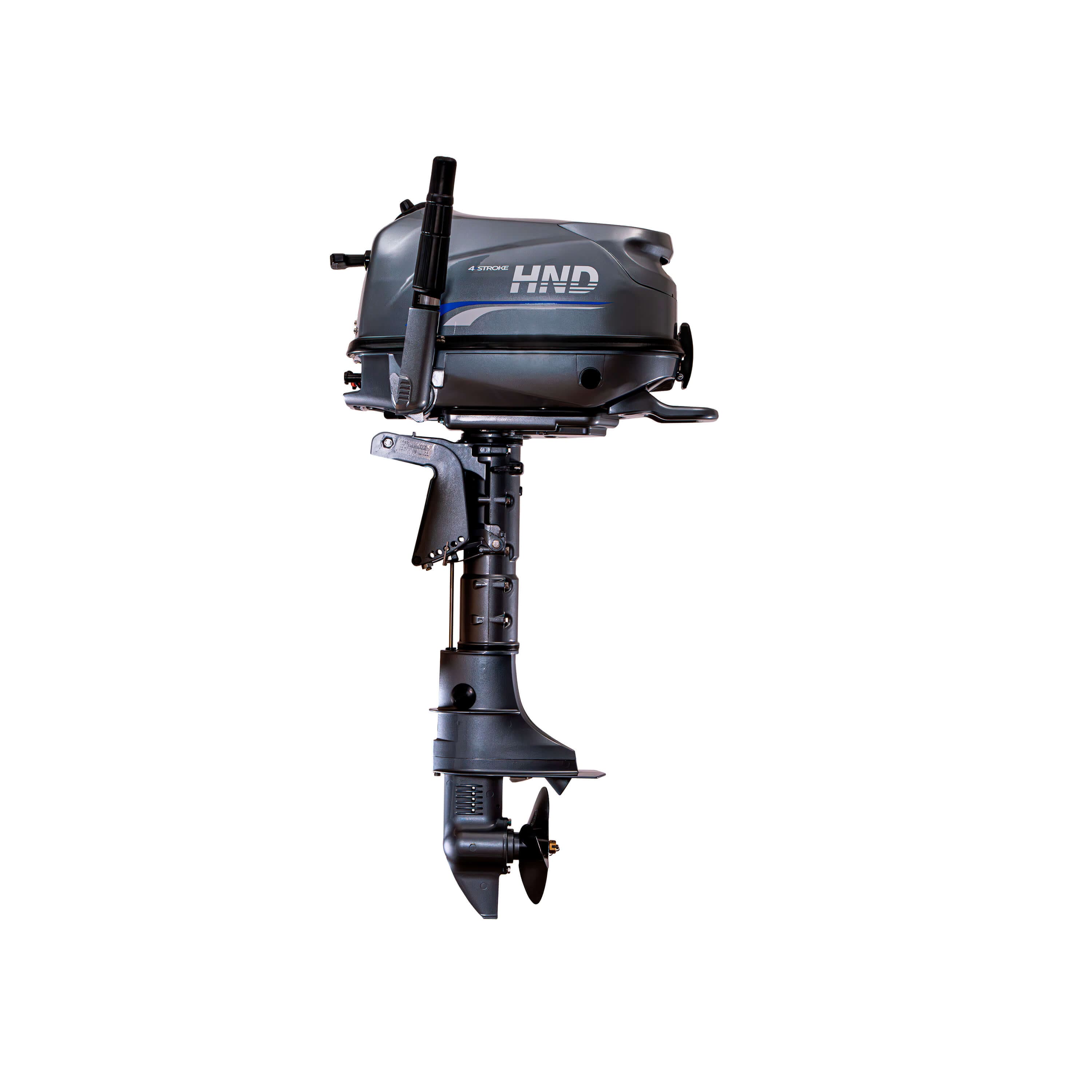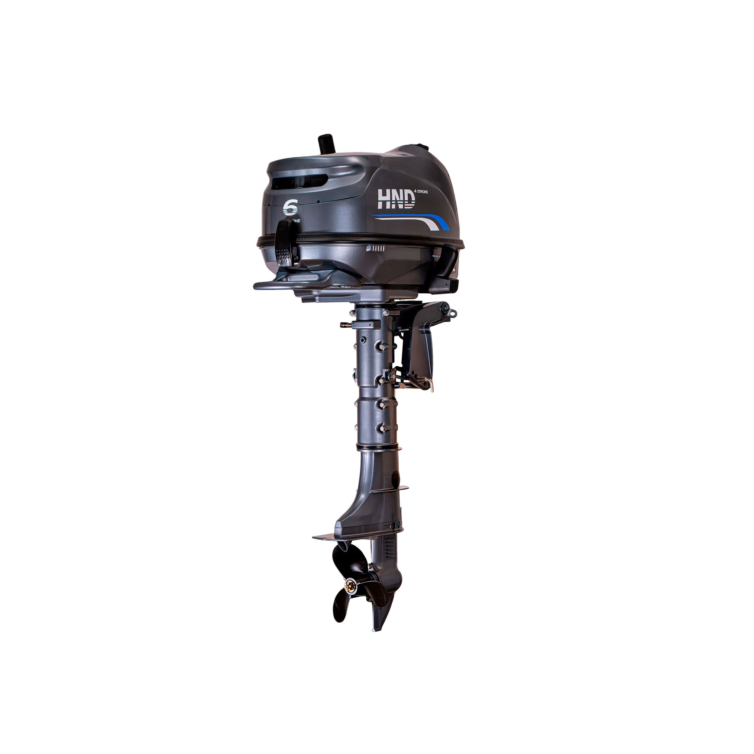 Представляем легкий и компактный 4-тактный подвесной лодочный мотор HND OB6 FHS номинальной мощности 6 лошадиных сил и рабочим объемом 139 см³. Расшифровка МТО: F - 4-тактный двигатель; H - румпельное управление; S - короткий дейдвуд
