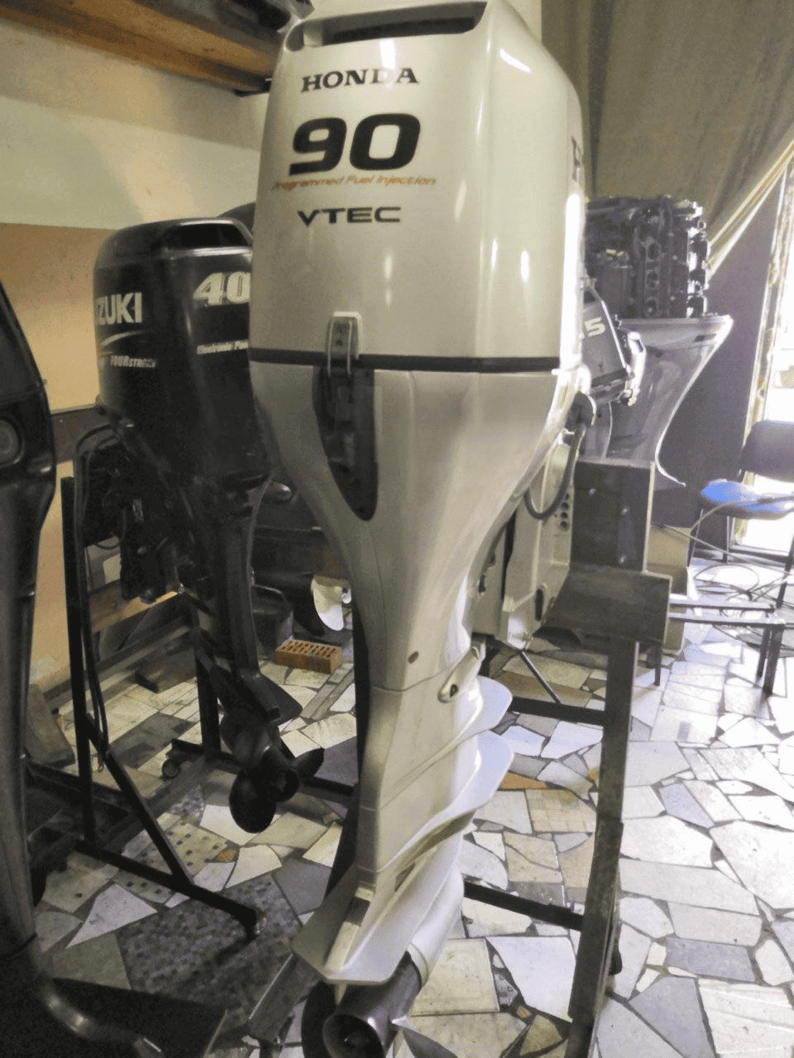 Подвесной лодочный мотор Honda BF 90 L рассчитан под высоту транца 508 мм и имеет общий вес 162 кг.