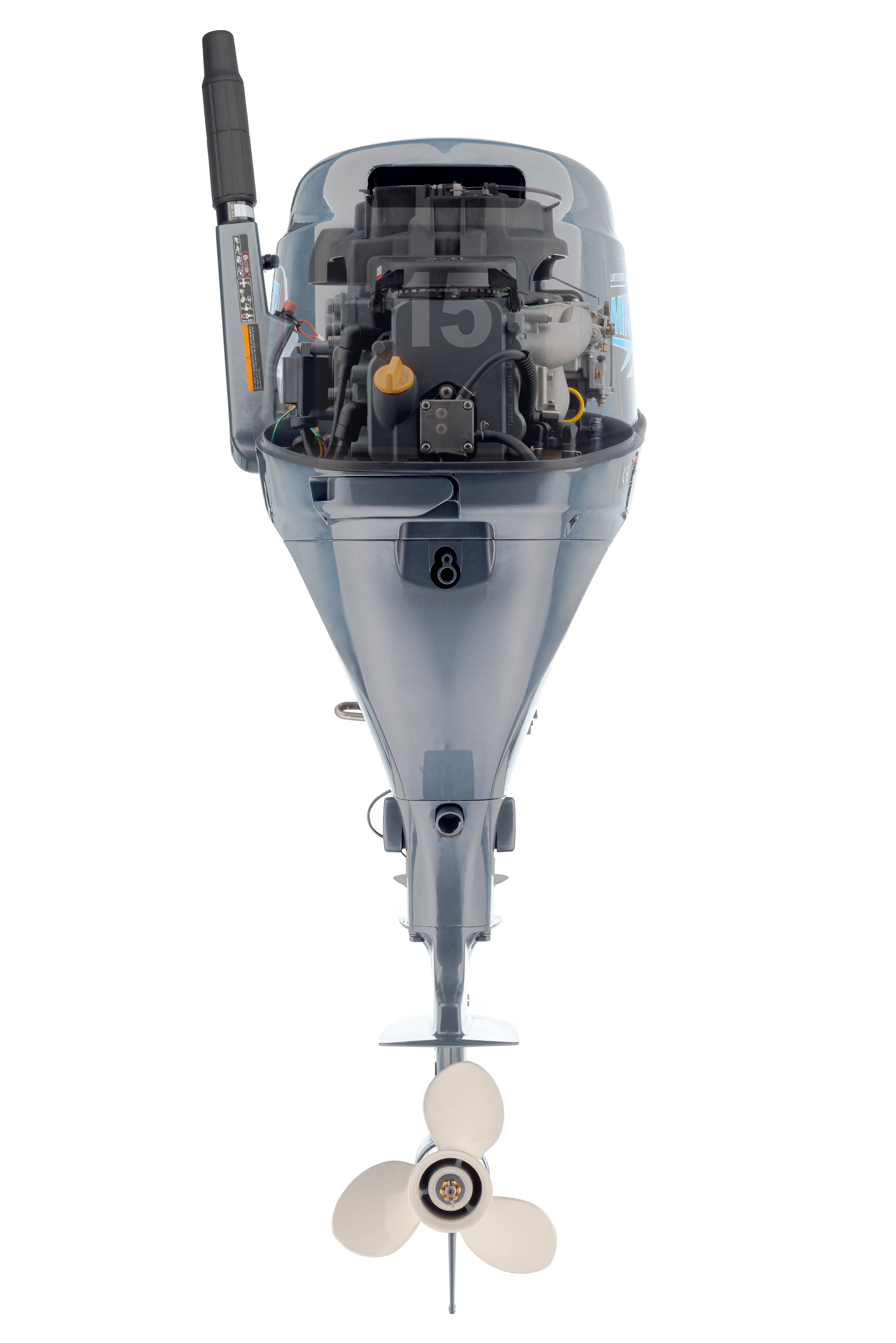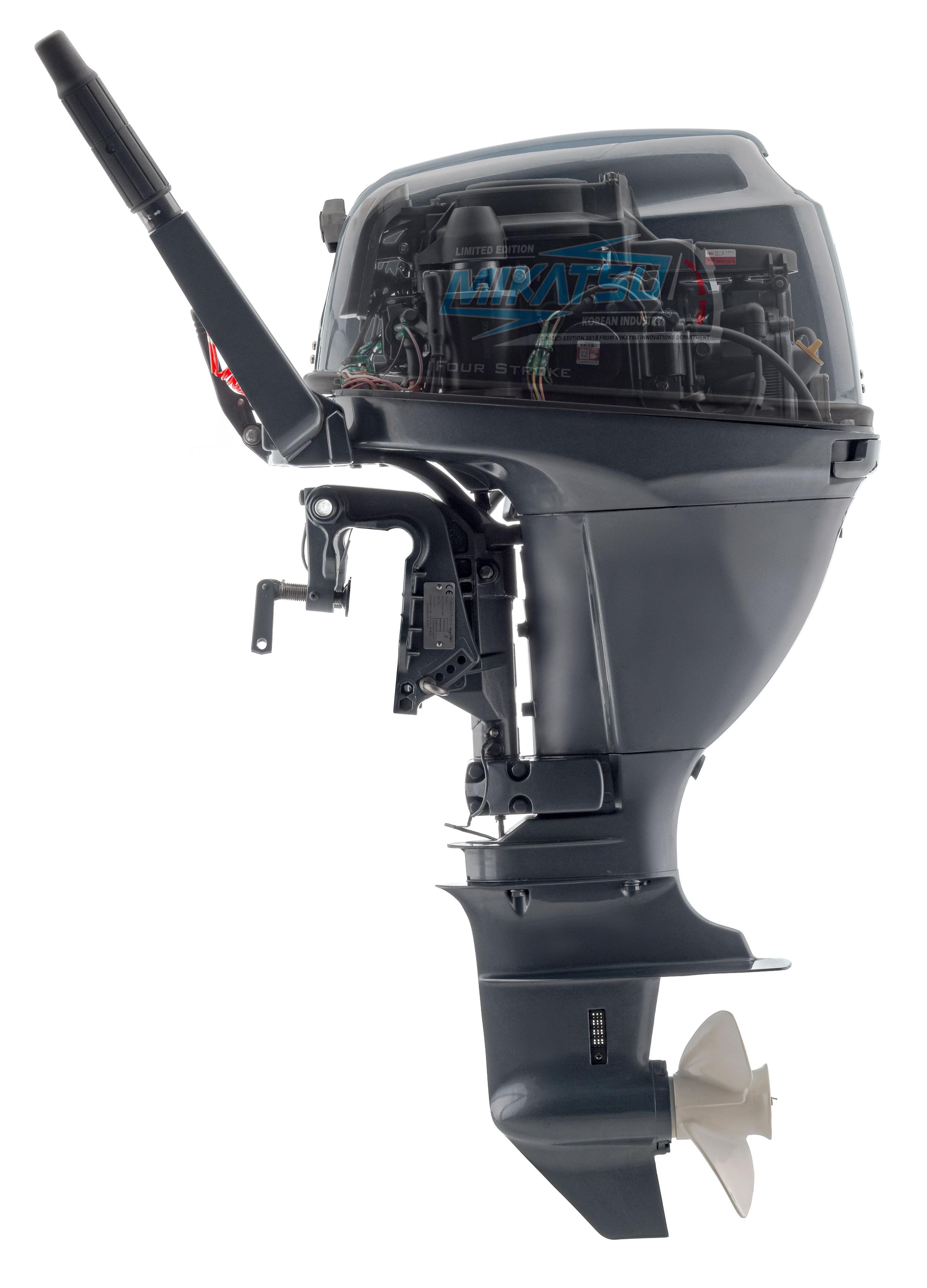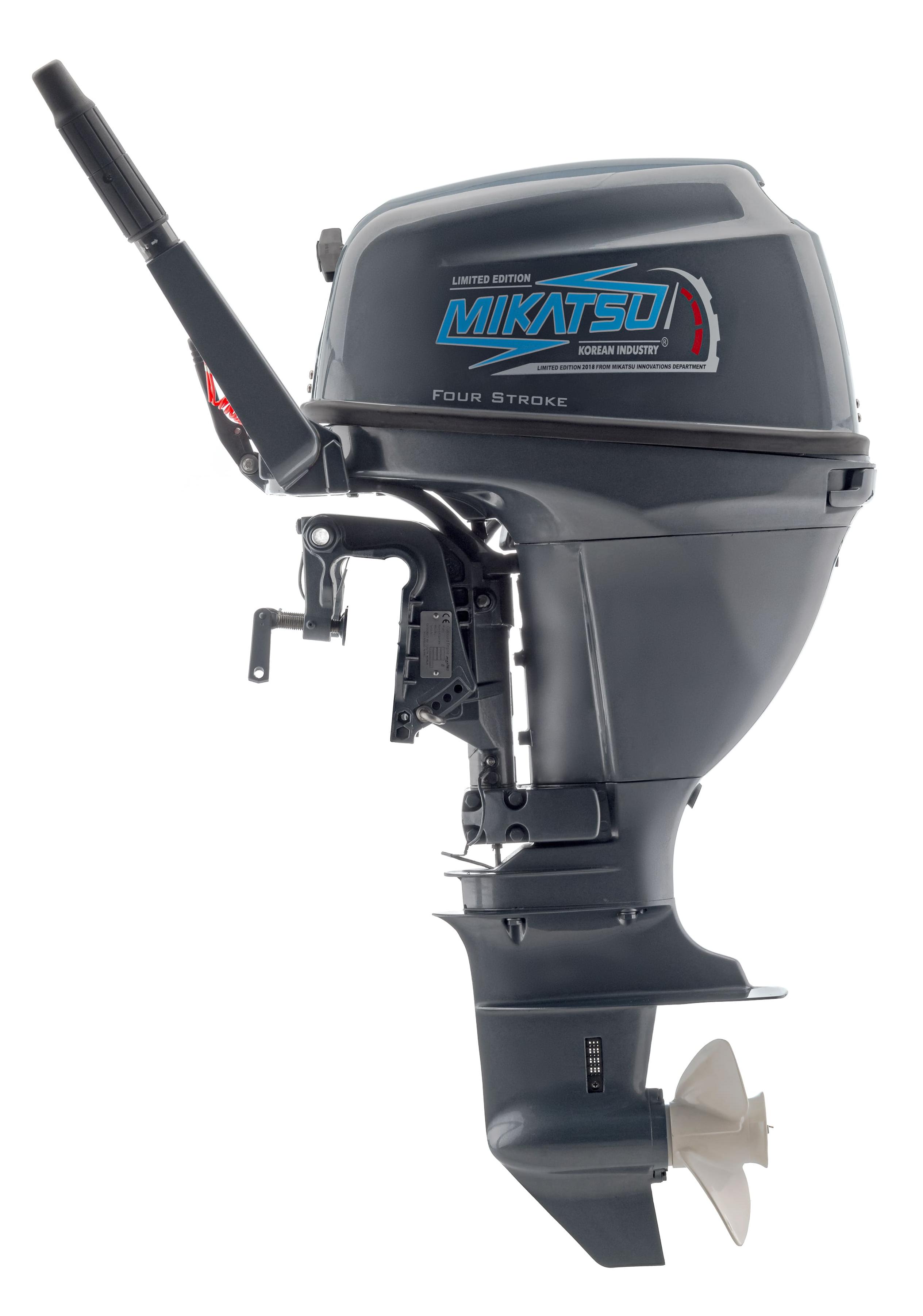 Подвесной лодочный мотор Mikatsu (Микатсу) MF15FHS отличный выбор для тех, кто хочет получить высокую мощность, но не желает переплачивать за высокий расход топлива. Он является полноценной аналогией японского двигателя Yamaha (Ямаха). Его 4-х тактный двухцилиндровый двигатель имеет мощность 15 л. с. При этом потребление топлива составляет всего 5,3 л на час работы. Достигается это благодаря использованию инновационной системы подачи топлива Mikatsu (Микатсу) и японских свечей зажигания NGK. Вес двигателя составляет 53,4 кг, он оборудован 3 передачами – передней, нейтральной и задней. В комплект поставки входят: фирменный внешний бак на 12 л, топливный шланг, набор инструментов и сервисный набор, иллюстрированное руководство на русском языке и сервисная книжка, подтверждающая десятилетнюю гарантию от производителя на данный мотор.