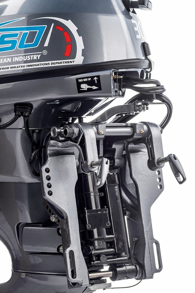 Зажигание происходит только один раз за два оборота в каждом цилиндре. В камере сгорания сжигается только бензин. Четырёхтактные двигатели, как правило, имеют повышенные размеры и вес. Компания MIKATSU добилась успеха в создании изделий, соответствующих ожиданиям её потребителей в отношении размеров и веса. Система промывки мотора пресной водой. Стандартная система для всех 4-тактных моторов мощностью выше 6 л.с. и для некоторых 2-тактных моделей. Присоединив садовый шланг к легкодоступному расположенному впереди штуцеру, можно вымыть соль и грязь из внутренних каналов двигателя. Эта операция, несомненно, снижает интенсивность коррозии и дополнительно продлевает срок службы двигателя. К тому же, для выполнения эта простая процедура не требует запуска мотора. Снижает интенсивность коррозии, и удлиняет срок службы двигателя. Удобное подсоединение шланга и простота операции. Промывка без необходимости запуска или продолжения работы двигателя. Подсос - автоматический Система регулировки дифферента - ручной (8°,12°,16°,20°,24°)