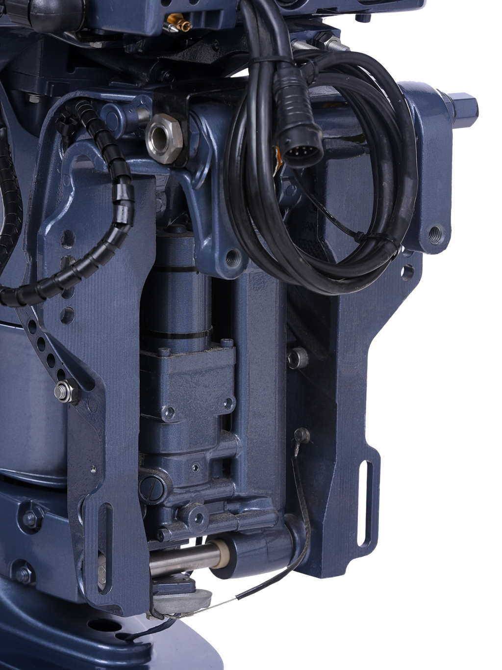 В комплект поставки входят: водометная насадка, фирменный внешний бак на 24 л, топливный шланг, набор инструментов и сервисный набор, иллюстрированное руководство на русском языке и сервисная книжка, подтверждающая десятилетнюю гарантию от производителя на данный мотор. Этот ПЛМ имеет различные модификации – с длинным (508 мм) и коротким (381-440 мм) дейдвудом. Также он оборудован электро-гидроподъемником. Струбцина двигателя подразумевает несколько режимов угла дифферента. Пятислойное лакокрасочное покрытие не только придает стильный внешний вид, но и надежно защищает мотор не только в пресной, но и в морской воде.