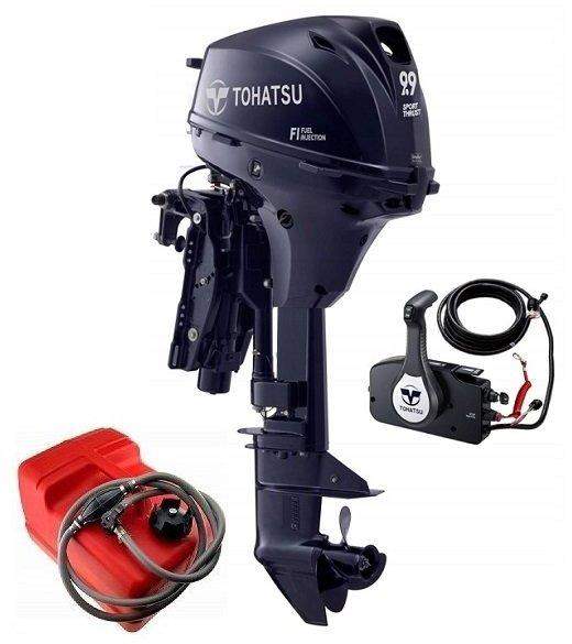 Tohatsu MFS 9.9 ES - четырёхтактный двухцилиндровый мотор мощностью 9,9 л.с. с румпельным управлением; тремя передачами нейтраль-вперёд-назад; цифровой системой зажигания (CD); ручным переводом в мелководный режим; внешним бензобаком на 12 л; рассчитанный на стандартную высоту транца 381 мм.