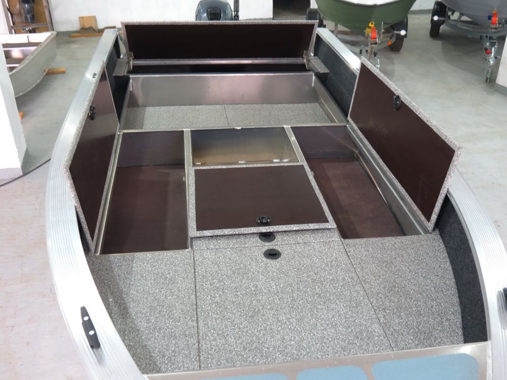 Для обеспечения комфорта на борту имеются 5 рундуков. Кормовой рундук предназначен для размещения запасов топлива, энергообеспечения и установки осушительной системы. Система закрывающихся рундуков в носовой платформе позволяет разместить практически весь необходимый багаж внутри. На бортах имеются два продольных кармана для мелких вещей, которые возможно использовать так же для хранения спиннингов в сложенном состоянии.