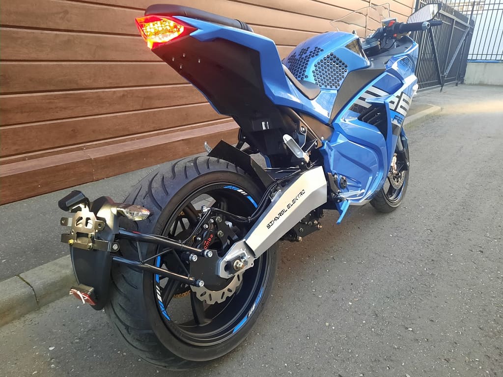 - Юридически это мопед – из-за номинальной мощности электродвигателя в 3 кВт, этот «мотоцикл» не нужно ставить на учет в ГАИ (и, следовательно, получать номерные знаки, платить налоги или штрафы), а управлять им можно при любой открытой категории в водительском удостоверении.