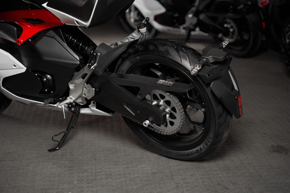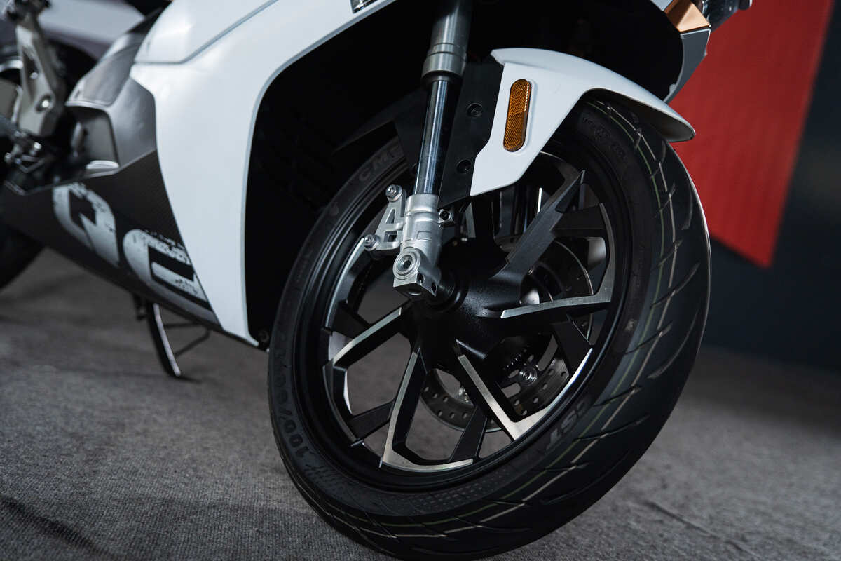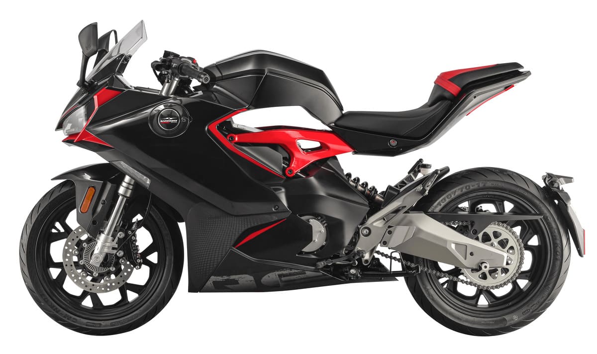 Электрический двигатель с воздушным охлаждением способен разогнать мотоцикл до 99 км/ч, а запас хода Sharmax Motors E-GP 501 Ultra составляет целых 120 км на одной полной зарядке.