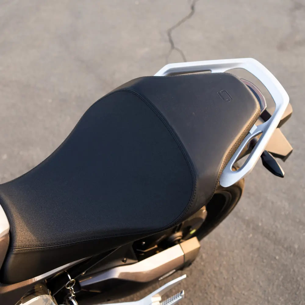 - Аэродинамические элементы, разработанные для гонок, придают электромотоциклу еще более агрессивный вид и делают его более устойчивым во время езды
