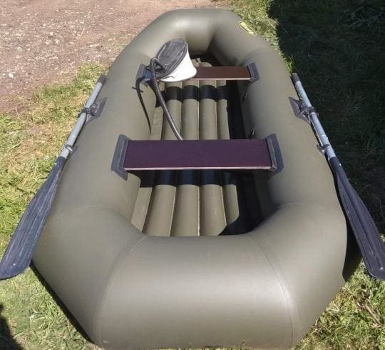 Моторно-гребная лодка изготовлена из прочной ткани ПВХ плотностью на баллонах 750 гр./кв.м., и на днище так же 1100 гр./кв.м. Лодка оснащена навесным транцем с возможностью установки лодочного мотора мощностью 2,5 л.с.
