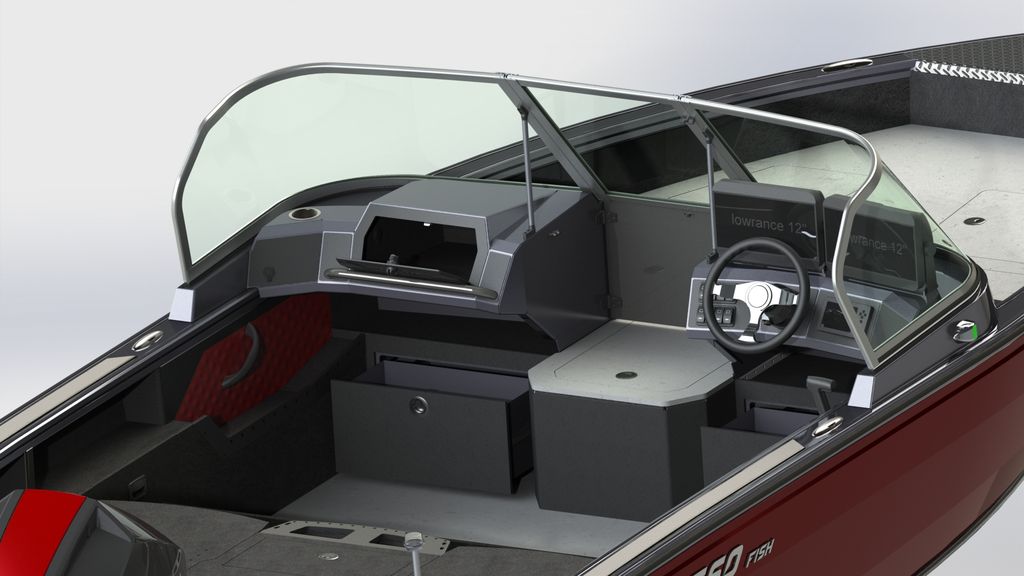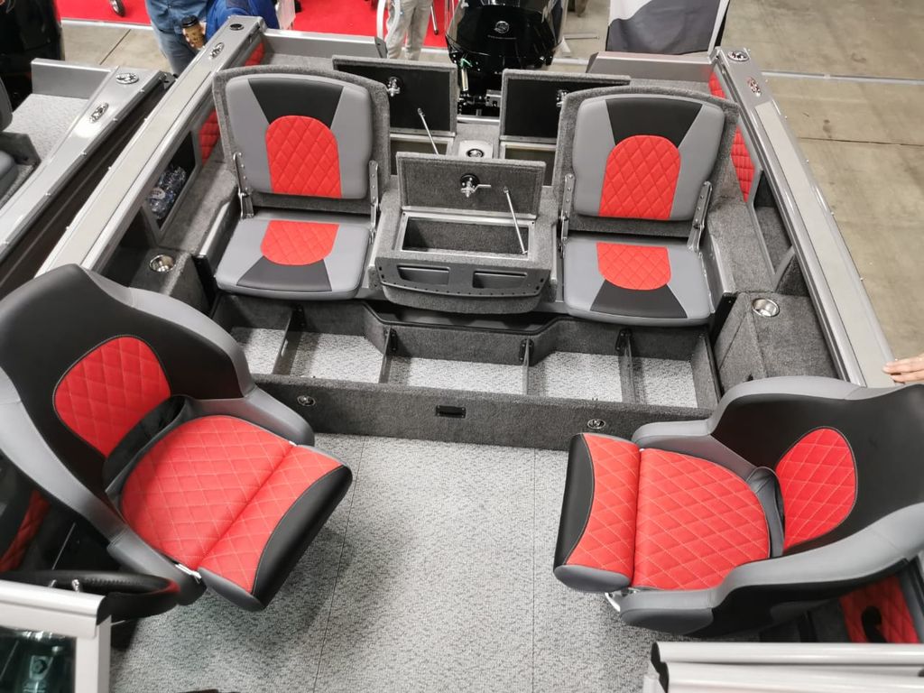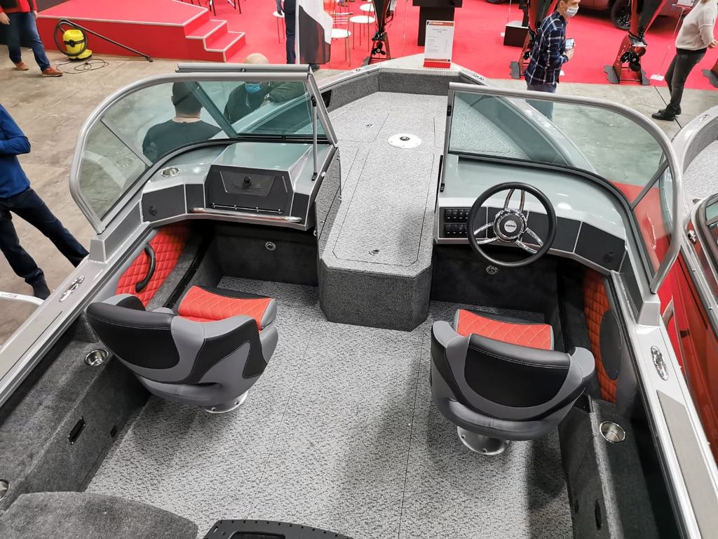 На планшире расположены швартовые утки Attwood (6 шт.), обеспечивающие надежное сцепление для комфортной эксплуатации на воде. С наружной стороны есть кнопки для крепления тента, а внутри — Т-паз для снастей. На носу катера находятся три ассиметрично скомпонованных рундука: два небольших впереди и один больший справа. Перед большим рундуком размещен аэратор объемом 60 литров. Для отделки кокпита и носовой палубы использован винил Maridek.