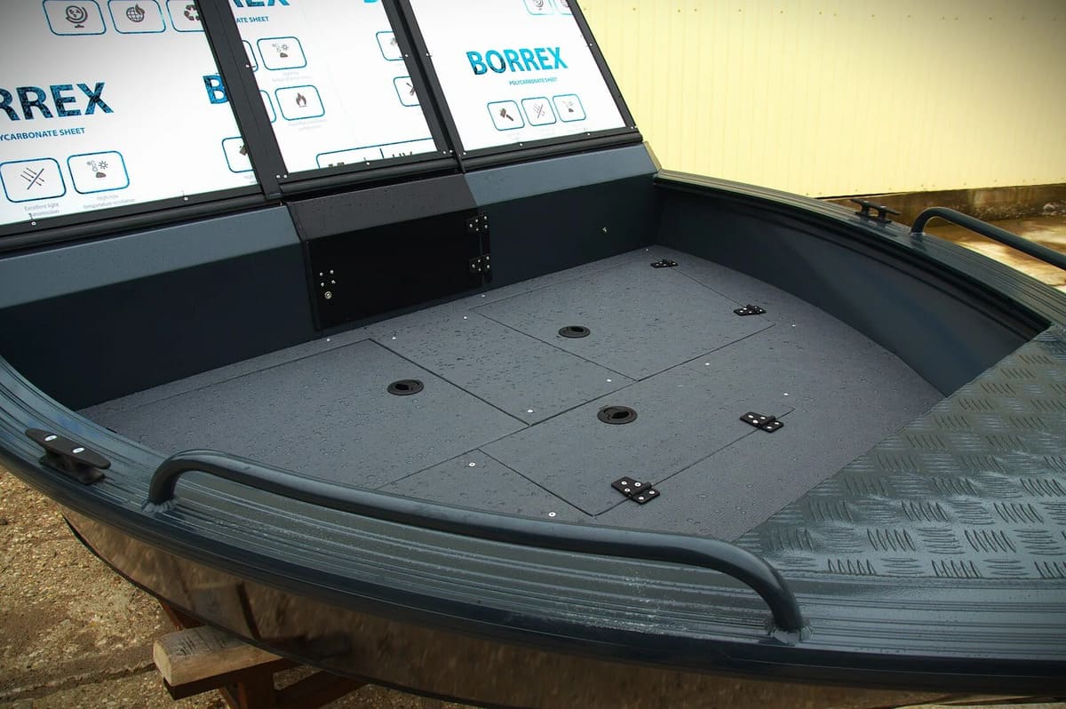 - Отделка пайолов носового кокпита и кормовой фиш-площадки ковролином Syntec