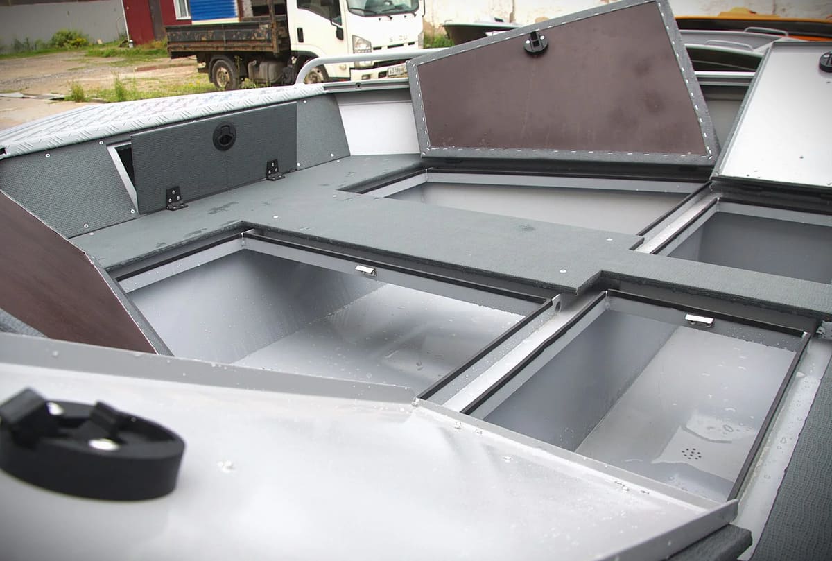 - Все рундуки - сухие, вентилируемые, с водоотводящим комингсом, оклеенные изнутри ковролином Syntec и винилом Marideck