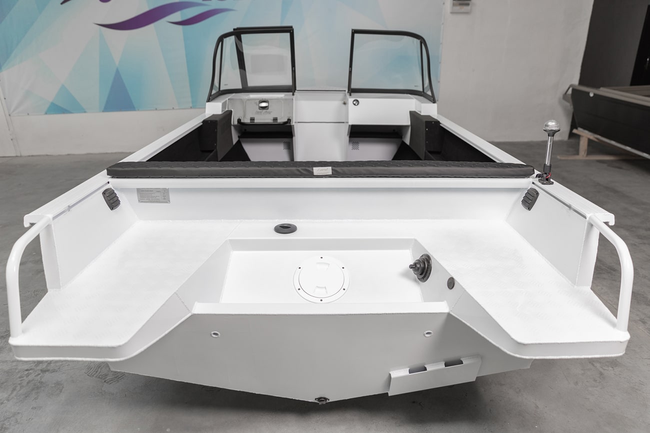 - Второй ряд мягких складных сидений, в сложенном состоянии находящихся вровень с кормовой фиш-площадкой