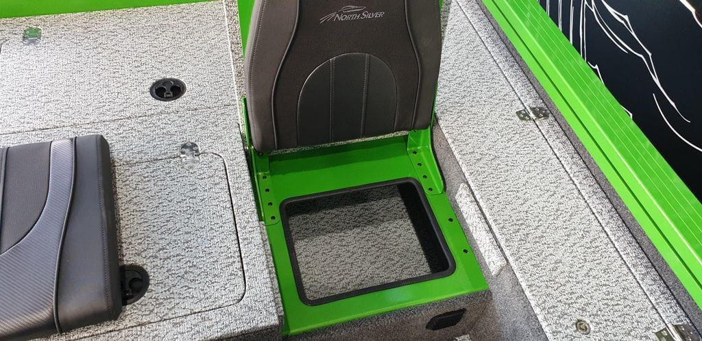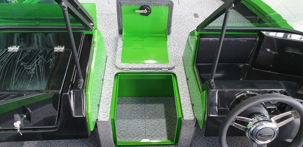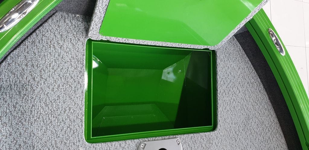 - Центральный рундук с возможностью размещения 5-и спинингов длиной до 2,7м (с водоотводящим комингсом), с откидной дверцей, возможностью размещения ходового тента и 3-х АКБ