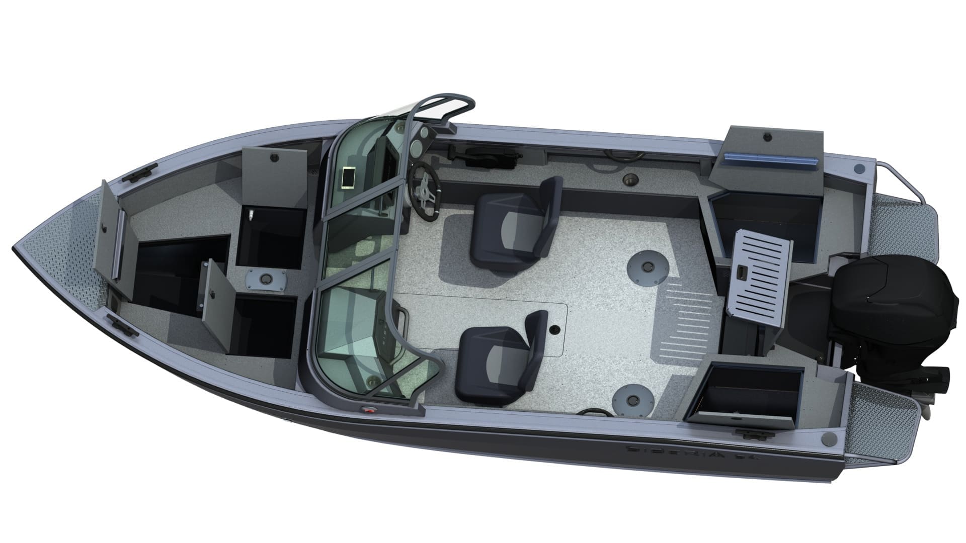 - Центральный подпайольный рундук с возможностью размещения 4-х спинингов длиной до 2,7м (с водоотводящим комингсом)