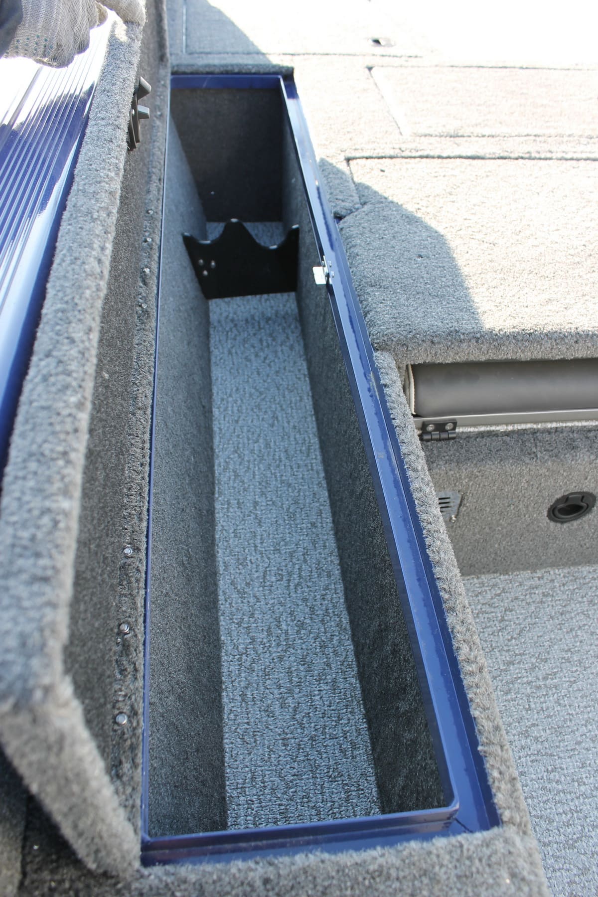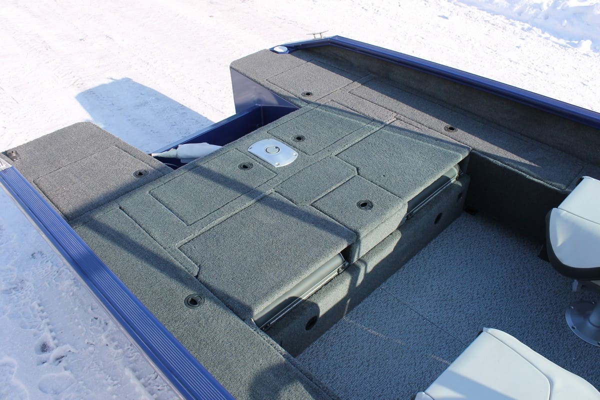 - Центральный рундук с возможностью размещения 5-и спинингов длиной до 2,7м (с водоотводящим комингсом), с откидной дверцей, возможностью размещения ходового тента и 3-х АКБ