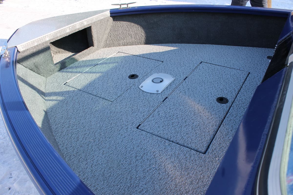 - Отделка пайолов носового кокпита и кормовой фиш-площадки ковролином Syntec