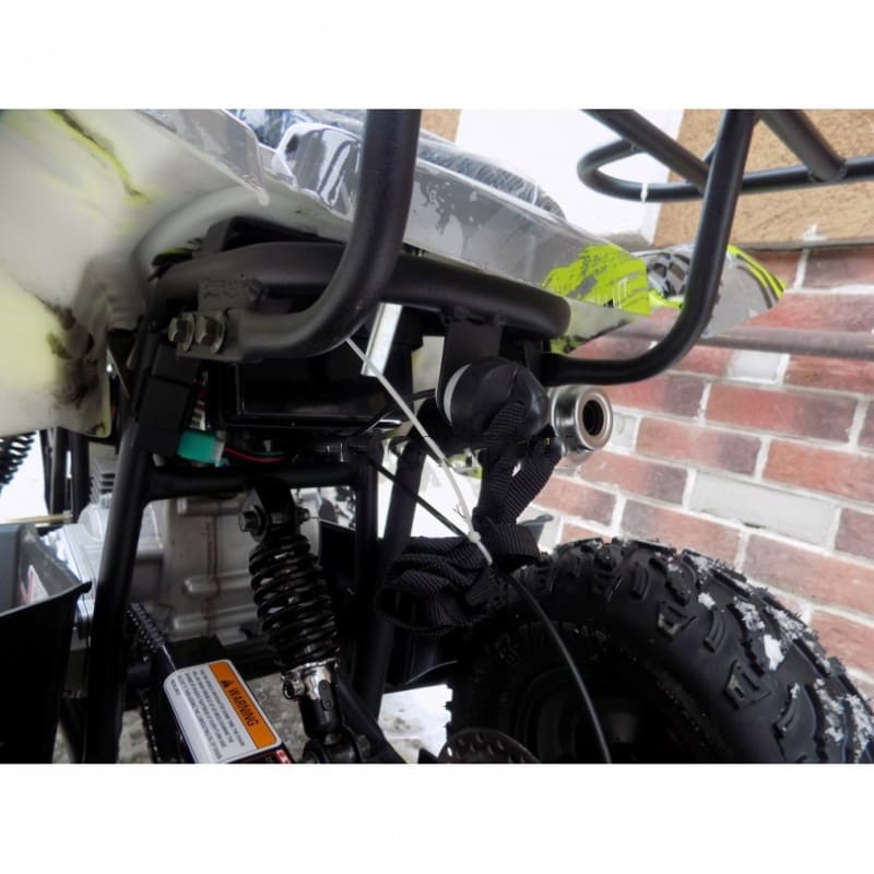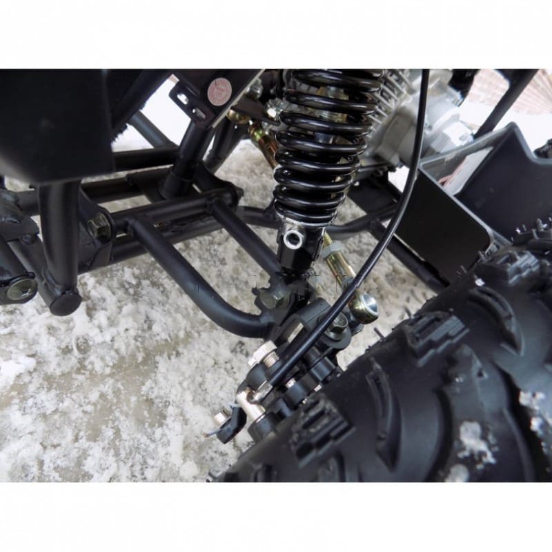 Квадроцикл оснащен бензиновым 2-х тактным двигателем мощностью 3,5 л.с. и объемом 49 кубов с воздушным охлаждением. Запуск двигателя возможен электростартером от аккумулятора. Цепь приводит в движение заднюю ось и выдерживает большие нагрузки. Кроме того, квадроцикл отличается уникальными характеристиками, потому со своим производственным весом 40 кг способен развивать скорость 45 км/ч при максимальной нагрузке. Отличный выбор для активной эксплуатации!