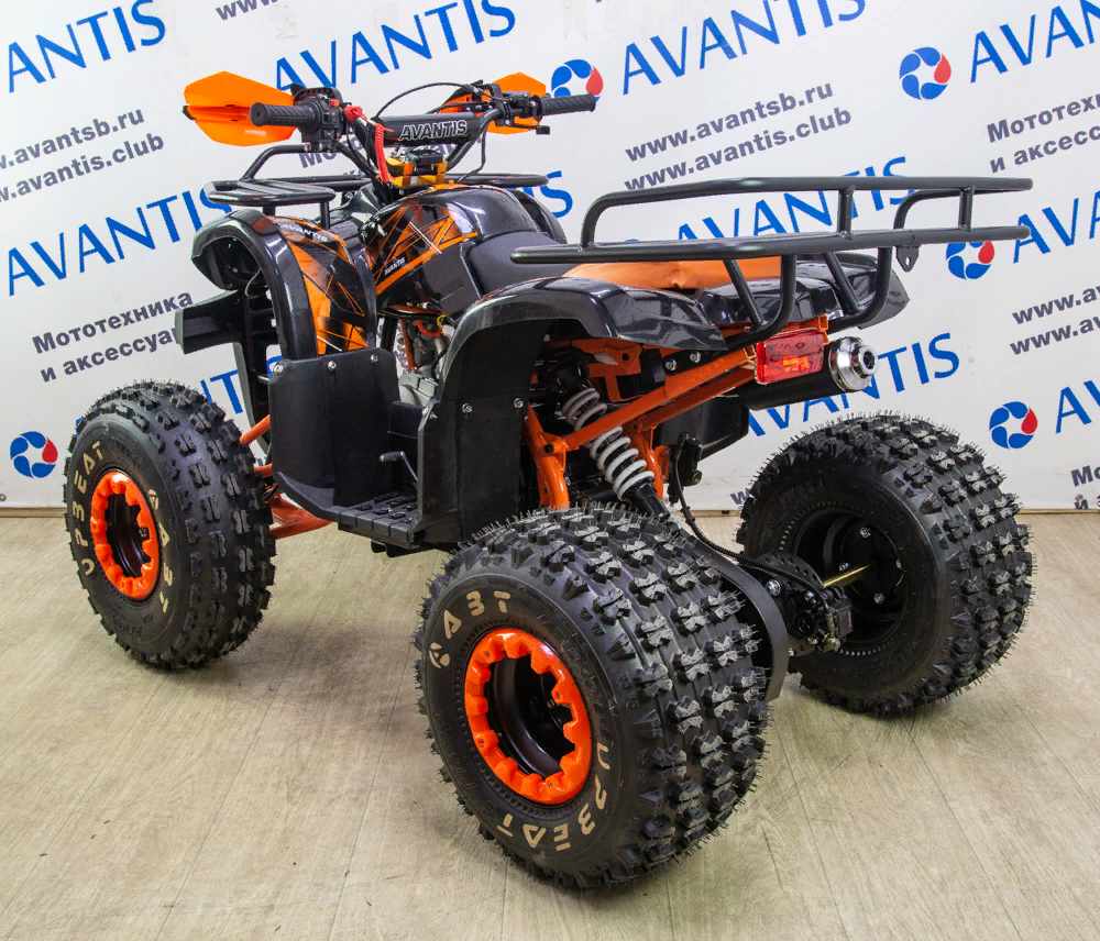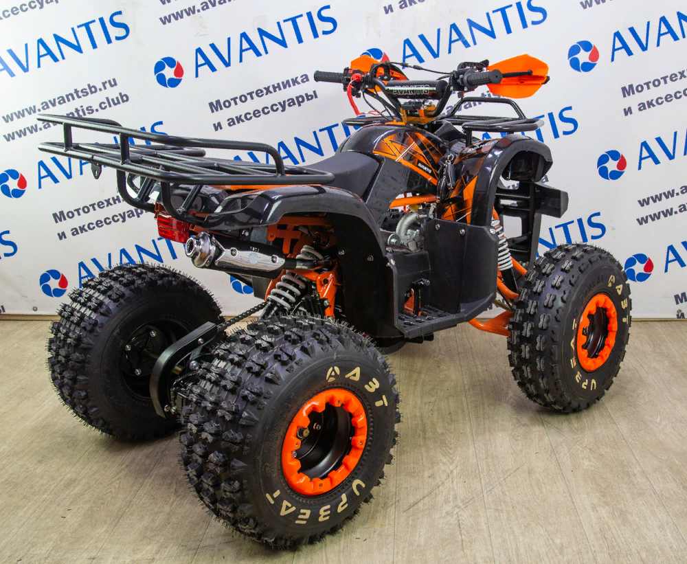 Квадроцикл Avantis Hunter 8 125 кубов – это универсальный и многофункциональный аппарат. В отличие от других транспортных средств, с данным внедорожником ваш наездник не ограничен одним сезоном. Берите внедорожник с собой на природу летом, катайтесь по осенней листве и заснеженным полям. На квадрик установлен карбюратор, и именно благодаря ему завод двигателя даже в 15-градусный мороз – не проблема. Еще один плюс такого инженерного решения – экономия на топливе. Подходит бензин АИ-92. Бензобака емкостью 3,5 л хватит, чтобы насладиться верным другом вдоволь, и открыть для себя новые места! Конечно, весь потенциал обновленного мотора в 10л.с. можно раскрыть только на ровном и твердом грунте, но, тем не менее, Avantis Hunter 8 125 кубов легко набирает разгон к удовольствию юного гонщика. Ограничить максимальную скорость вы всегда сможете с помощью дроссельной заслонки. В комплекте имеется автозапуск с дистанционным управлением и сигнализацией. Характеристики: