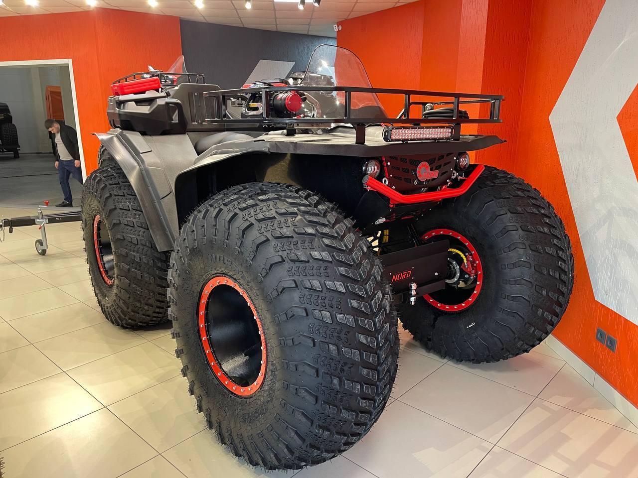 ATV (quad bike) Nord Ultimate отличается двигателем мощностью 109 л.с. и объемом 1500 куб. см с жидкостным охлаждением, обеспечивает отличные динамические характеристики, достигая минимально скорости 70 км/ч. Благодаря своей конструкции и особенностям такая модель подходит для преодоления сложного бездорожья, болота и лесной территории.