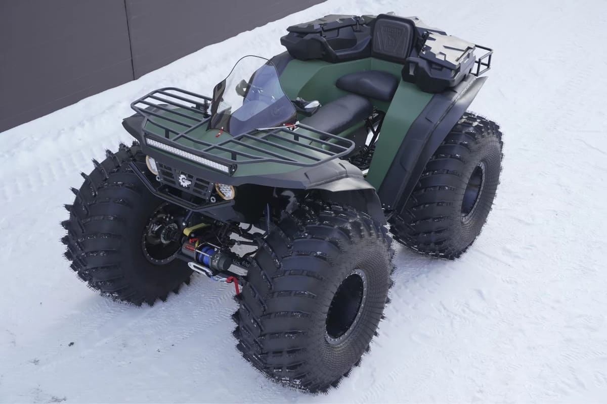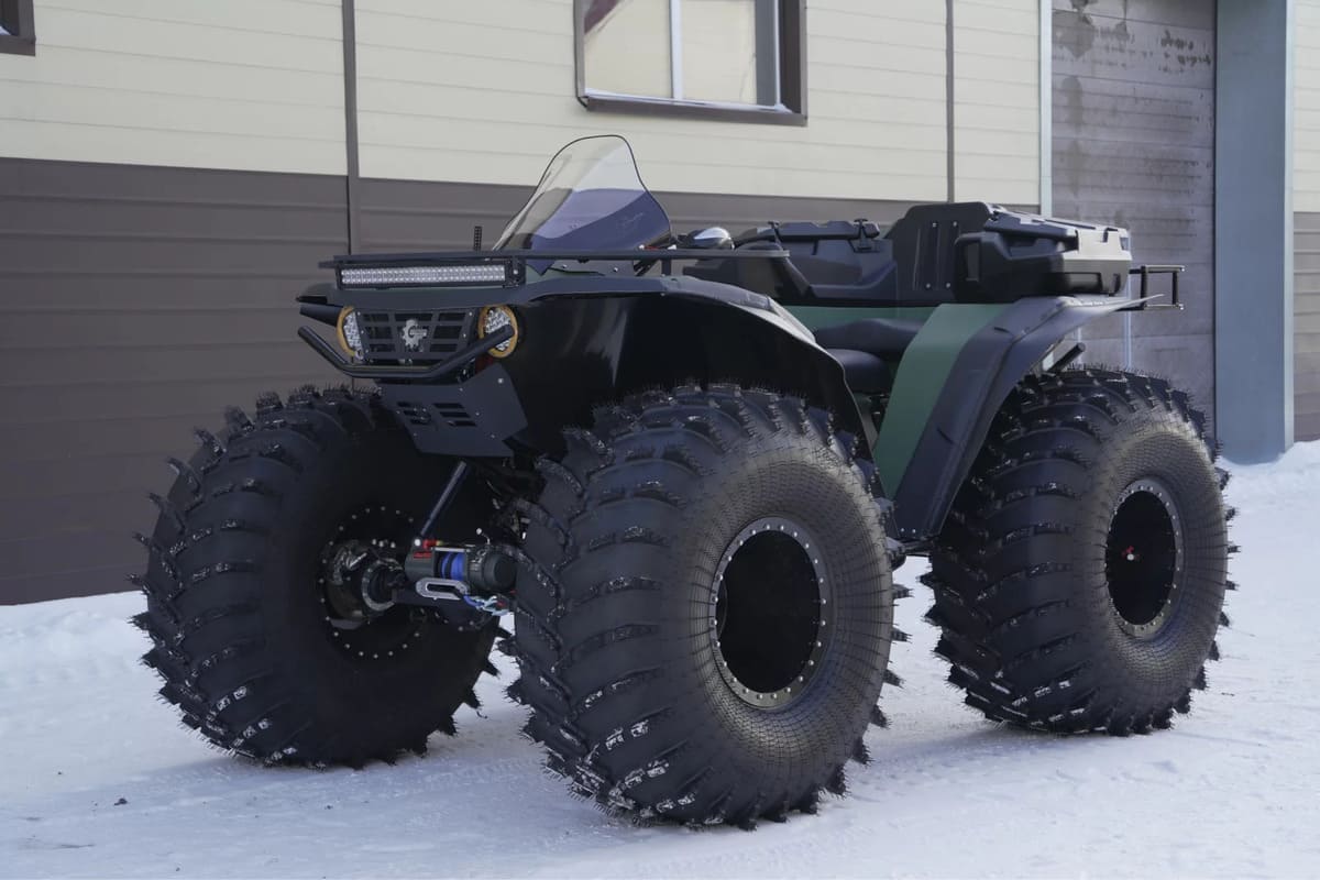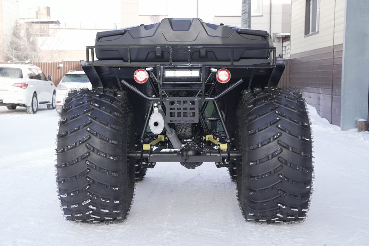 Квадроцикл оснащен шинами сверхнизкого давления диаметром 135 см, что обеспечивает отличное сцепление на мягких участках. Блокировка мостов повышает проходимость, а дисковые тормоза гарантируют безопасное торможение. Автоматическая коробка передач облегчает управление, а гидроусилитель руля улучшает маневренность. Сокол развивает скорость до 85 км/ч и подходит для активного отдыха и сложных задач. Светодиодная система освещения обеспечивает безопасность в темное время суток.