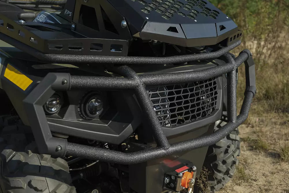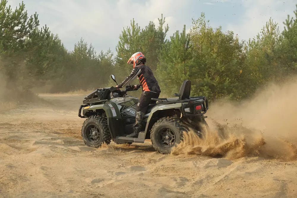 Квадрик оборудован 4-х тактным бензиновым двигателем мощностью 68 л.с. и объемом 976 куб. см, что обеспечивает ему отличную производительность и динамику. Он также имеет водяное охлаждение, что гарантирует надежную работу даже в самых сложных условиях.