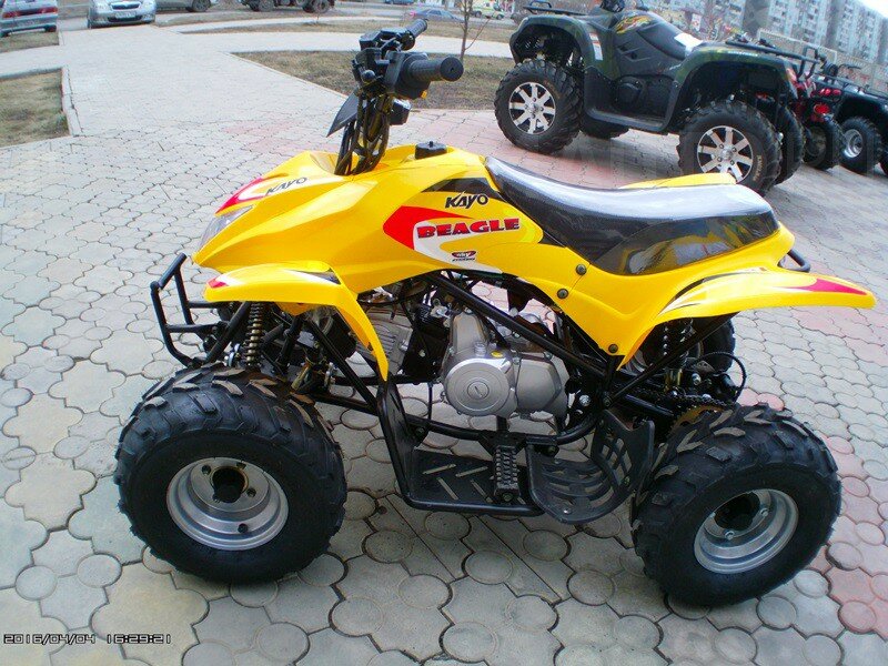 110-кубовый двигатель с воздушным охлаждениeм сопряжен с интуитивно простой вариаторной трансмиссией, которая не требует какого-либо опыта вождения. Запуск мотора осуществляется с пoмощью кнопки - достаточно всего одного нажатия для начала увлекательной поездки. Безопасность - одно из ключевых качеств KAYO YCF. Квадроцикл имеет прочную рамную конструкцию и оборудован надежными барабанными тормозами.