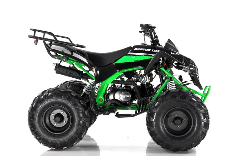 АТВ Мотакс Раптор оборудован бензиновым двигателем Zongshen мощностью 7 лс и объемом 125 кубов, что гарантирует отличную проходимость и хорошую динамику на дороге. Благодаря системе воздушного охлаждения, он подходит как для ровных трасс, так и для сложных условий бездорожья.