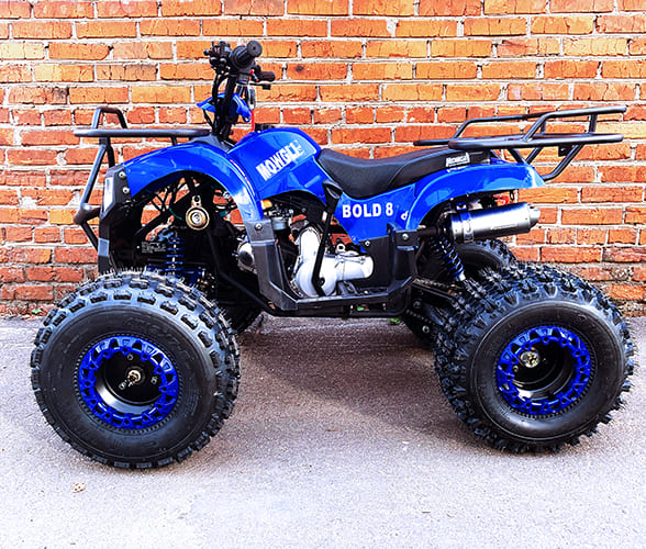 Квадроцикл MOWGLI BOLD 8 — это детский квадроцикл, который подходит юным райдерам от 6 до 18 лет. Данная модель отличается комфортной конструкции и удобной формой. Бензиновый квадроцикл Маугли оснащен вариаторной трансмиссией и может развивать максимальную скорость до 60 км/ч. Все характеристики в квадрике подобраны таким образом, чтобы ваш ребенок смог в безопасности обучаться езде на мототранспорте.