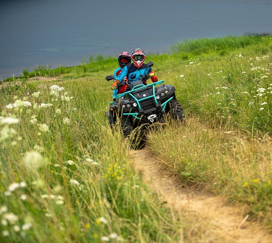 Модель квадрика РМ оснащена полным приводом, блокировкой дифференциала и 26-дюймовыми колесами на литых дисках для преодоления песков, болот и лесных троп. Конструкция рамы оптимизирована для снижения веса, а двухуровневое сиденье и герметичные багажные ящики повышают комфорт при длительных поездках. Базовая комплектация включает электролебедку, фаркоп, ударопрочный пластик и защиту днища, обеспечивая готовность к экстремальным условиям.