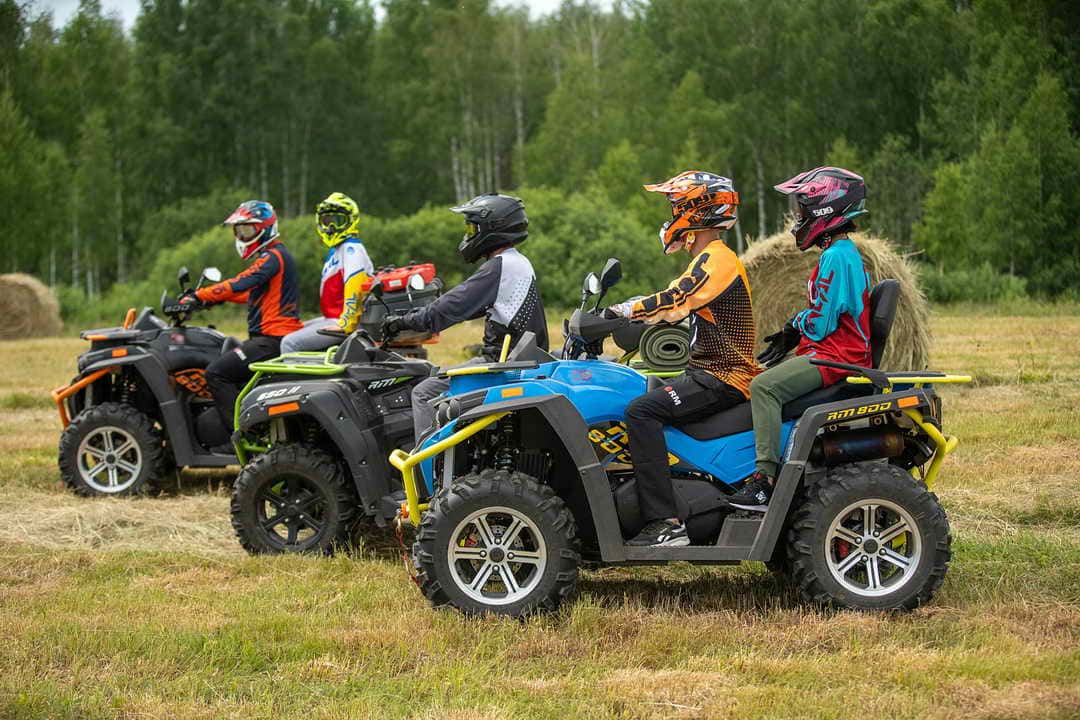 Квадроцикл АТВ РМ оснащен V-образным 2-цилиндровым бензиновым двигателем (800 кубов, 60 л.с.) с жидкостным охлаждением, карбюраторной системой и электростартером. Вариаторная трансмиссия и полный привод с карданной передачей обеспечивают плавный разгон до 100 км/ч даже при полной загрузке. Модернизированная подвеска и крутой угол атаки переднего бампера позволяют штурмовать лесные завалы и глубокую грязь.