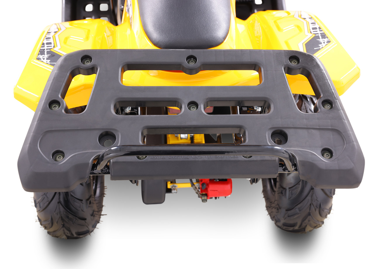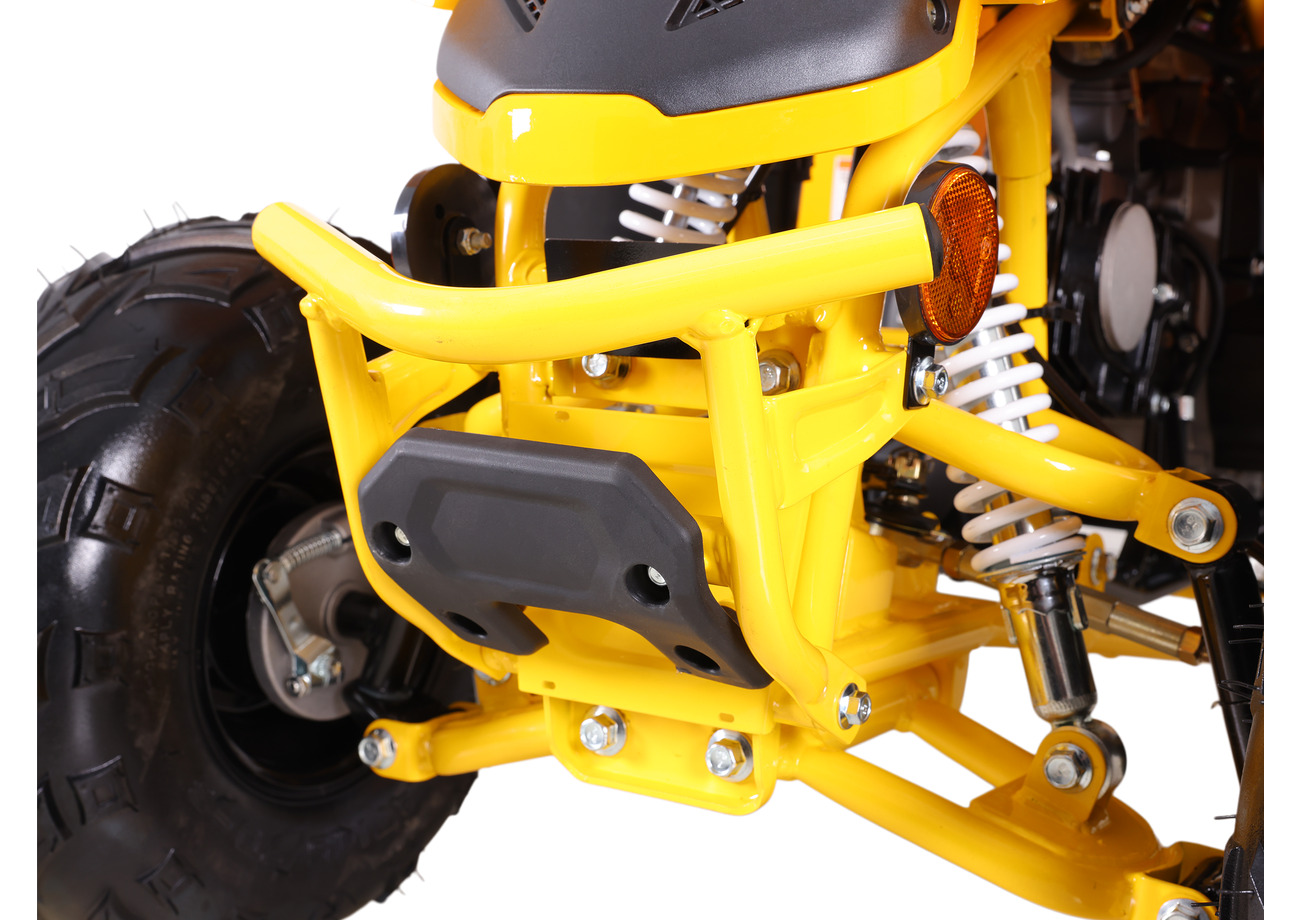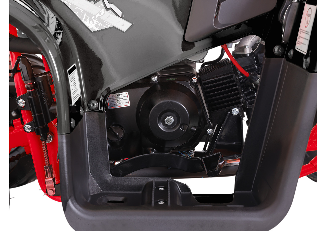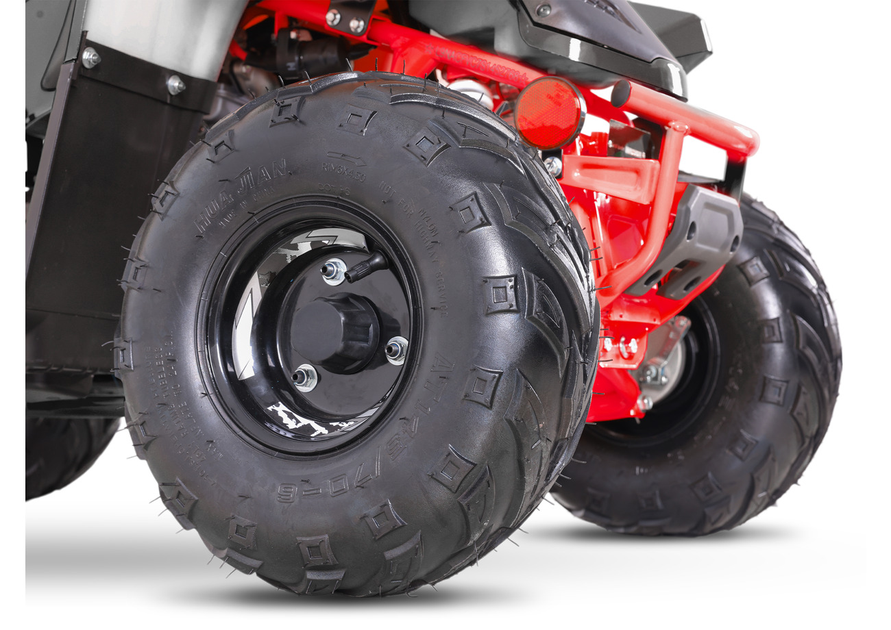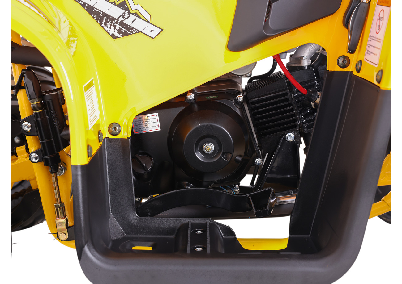 -Мощный двигатель. Благодаря 4-тактному двигателю объёмом 110 см³ и мощностью 9 л. с., Sharmax Cross 130 обеспечивает уверенный старт и плавный разгон до 45 км/ч. Юный райдер сможет легко преодолевать любые дорожные препятствия и наслаждаться скоростью на открытых маршрутах. При этом квадроцикл отличается экономным расходом топлива, что делает его удобным в эксплуатации.