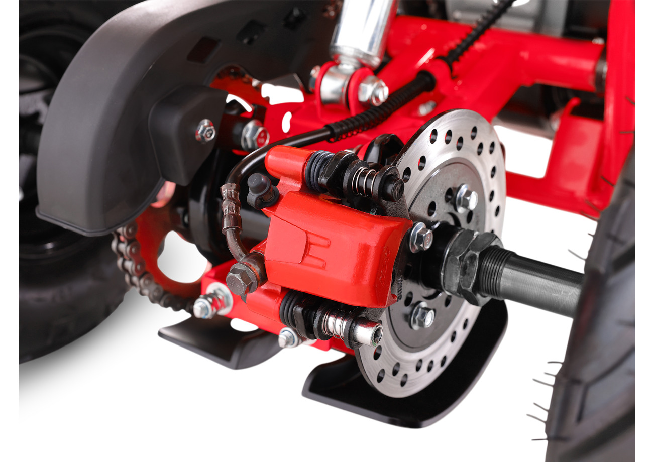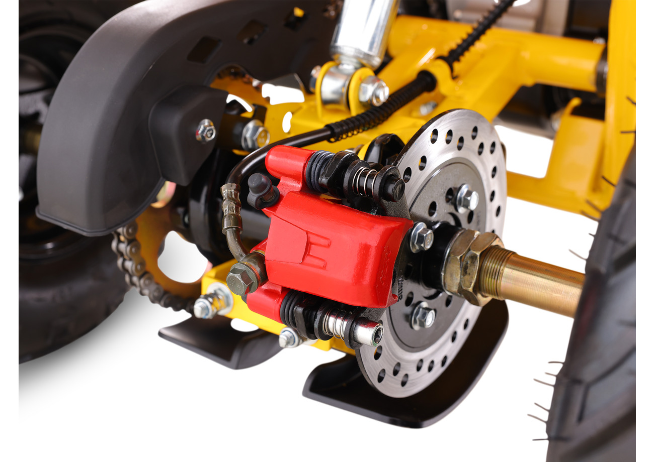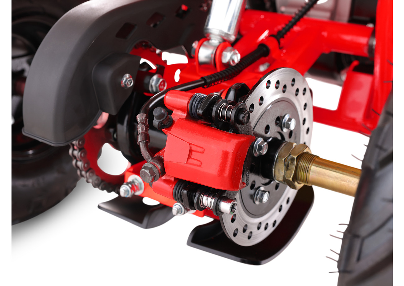 Безопасность юного водителя — приоритет модели Sharmax Cross 130. Гидравлический дисковый тормоз гарантирует эффективное торможение в любых условиях, а ограничитель скорости и чека безопасности защищают ребёнка от возможных опасностей. Яркая и стильная внешность квадроцикла превращает каждую поездку в настоящий праздник, позволяя маленькому исследователю чувствовать себя героем захватывающего фильма.