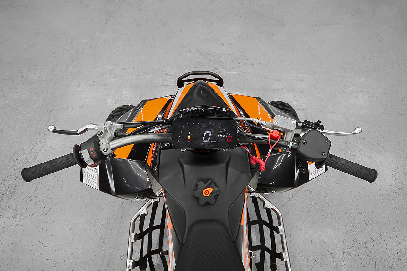 Sharmax 550 GX-Cruiser оборудован гидравлическими двухпоршневыми дисковыми тормозами на передней и задней оси. Они обеспечивают быстрое и уверенное замедление, что крайне важно при высокой скорости или на сложных участках трассы. Тормоза обладают высокой температурной стойкостью и не теряют своей эффективности в экстремальных условиях.