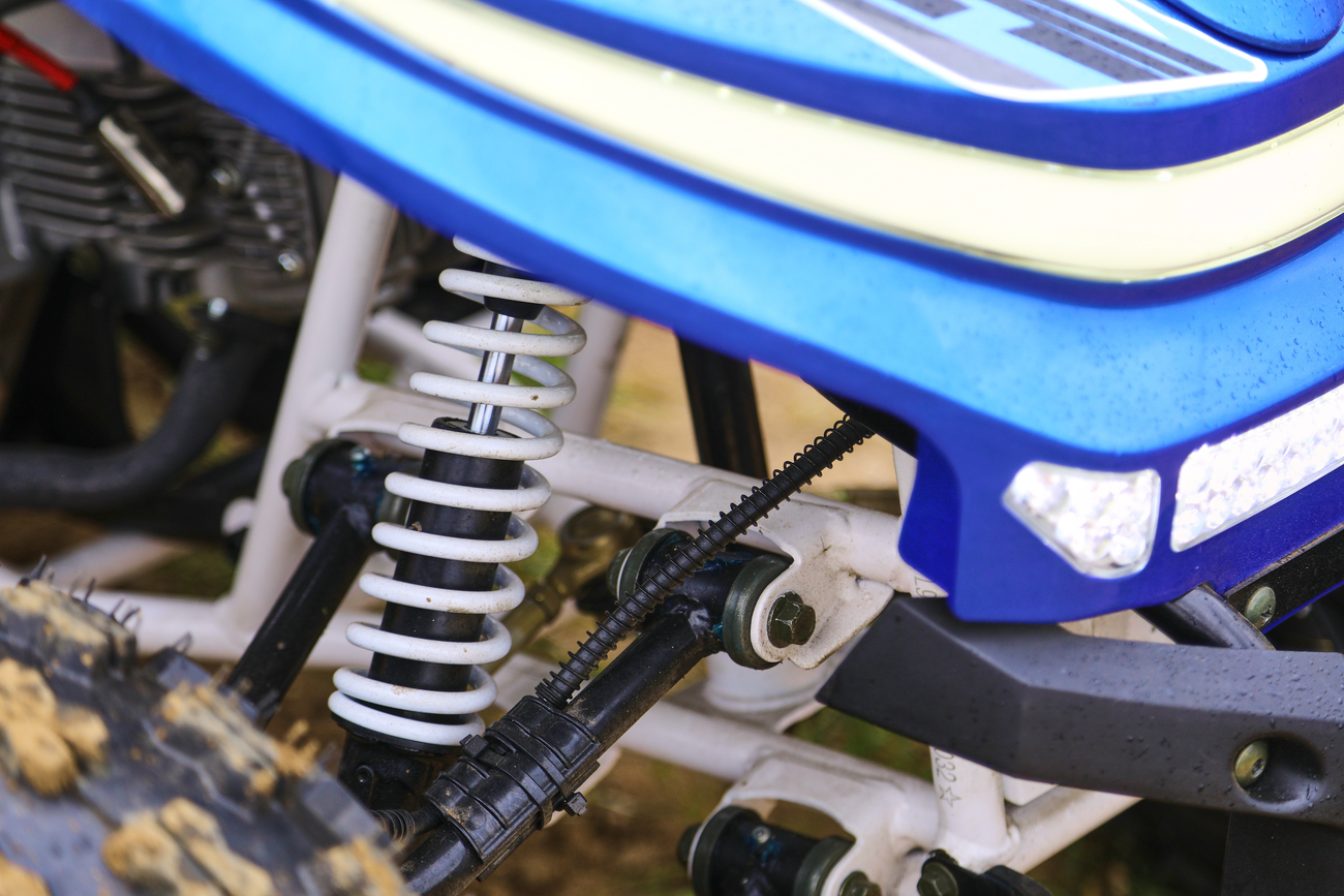Шасси Sharmax 180 CROSS RX оснащено независимой передней подвеской с двойными А-образными рычагами и маятниковой задней подвеской с моноамортизатором, обеспечивающими комфортное управление и отличную устойчивость. Ход передней подвески составляет 120 мм, а задней – 180 мм. Квадроцикл оборудован газомаслянными передними амортизаторами и моноамортизатором на задней оси. С максимальной скоростью 65 км/ч, он идеально подходит для активного отдыха.