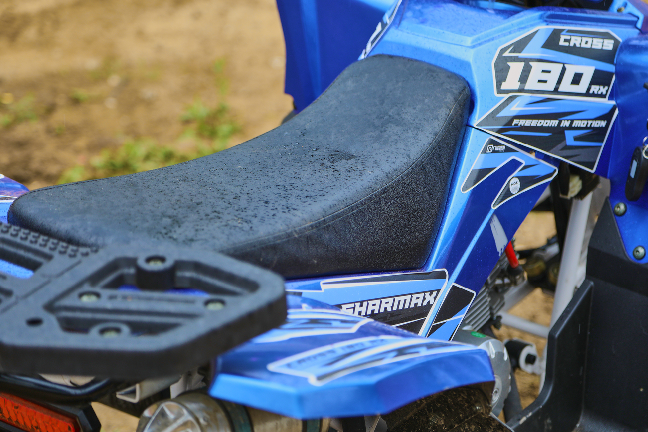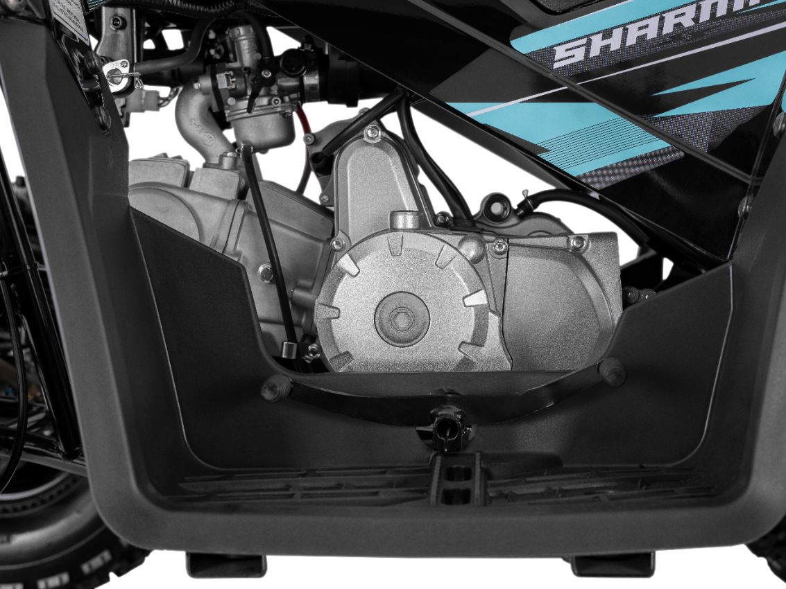 Sharmax 180 CROSS RX – это мощный и надежный одноцилиндровый 4-тактный квадроцикл, который сочетает в себе отличные характеристики и высокую маневренность. С мощностью 16 л.с. и крутящим моментом 18 Н.м, этот модель великолепно подходит как для городских поездок, так и для легкого бездорожья. Объем двигателя составляет 125 см³ с степенью сжатия 9.9:1, что обеспечивает экономичный расход топлива всего 2-3 литра на 100 км. Вмещая 3.5 литра топлива, мотоцикл гарантирует длительные поездки без частой дозаправки.