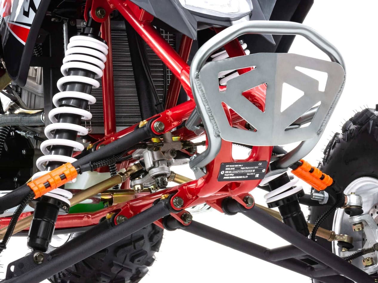 В целях обеспечения повышенной безопасности производитель оснастил квадроцикл двумя гидравлическими дисковыми тормозами на передних и задних колёсах. Вся тормозная система отличается высокой эффективностью и надёжностью.