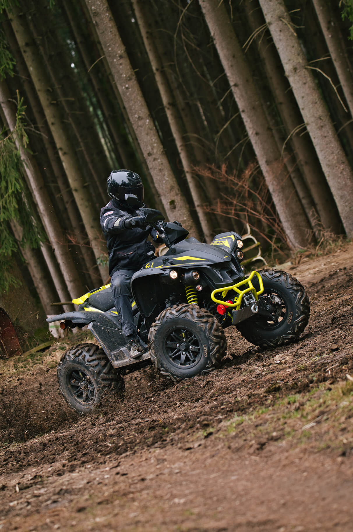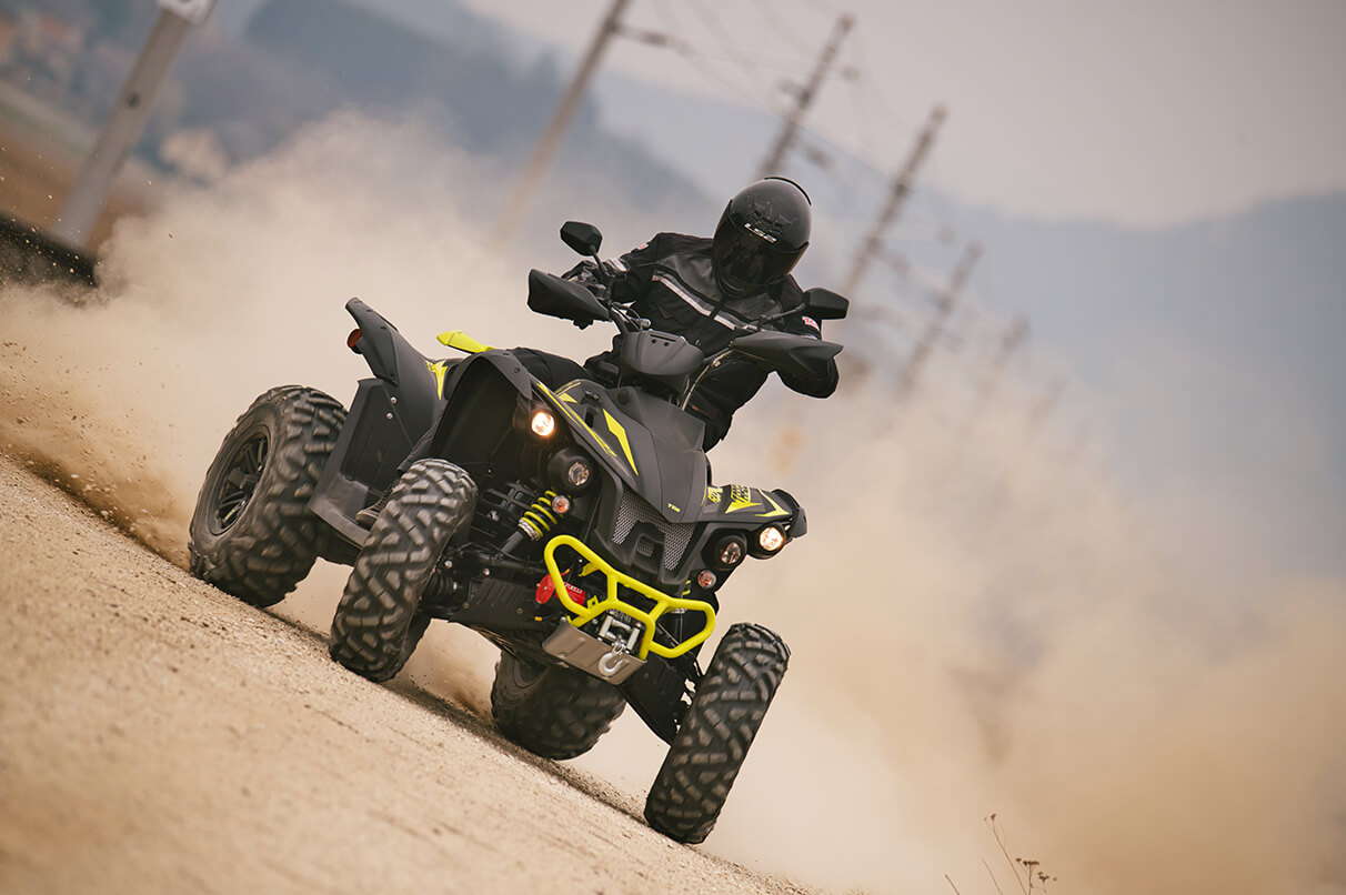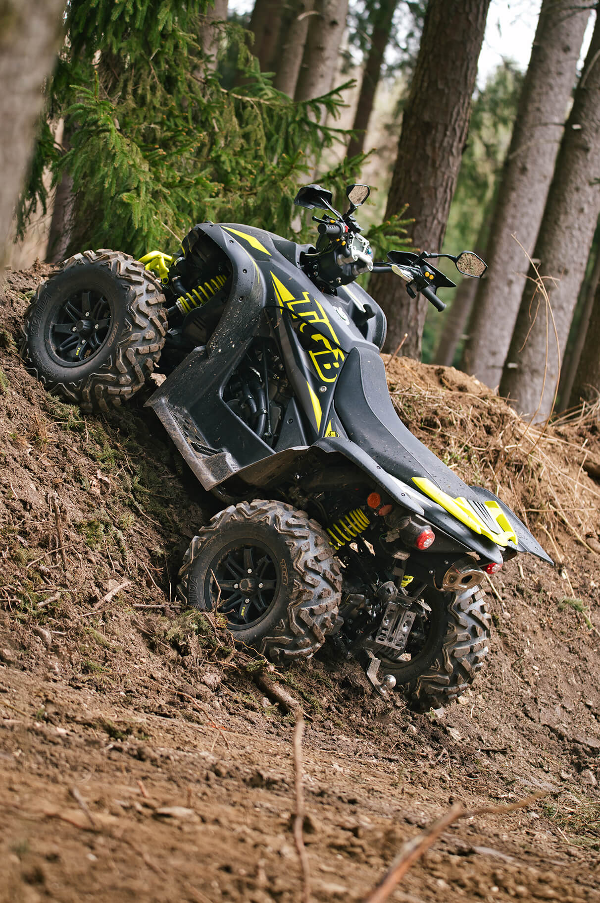 Хромомолибденовая рама квадрика ТГБ выдерживает нагрузки, а габариты 195×124×128 см обеспечивают маневренность. Агрессивный стиль подчеркивают 14-дюймовые колеса, клиренс 290 мм и защитные дуги. Матовое покрытие кузова маскирует царапины, сохраняя презентабельный вид.